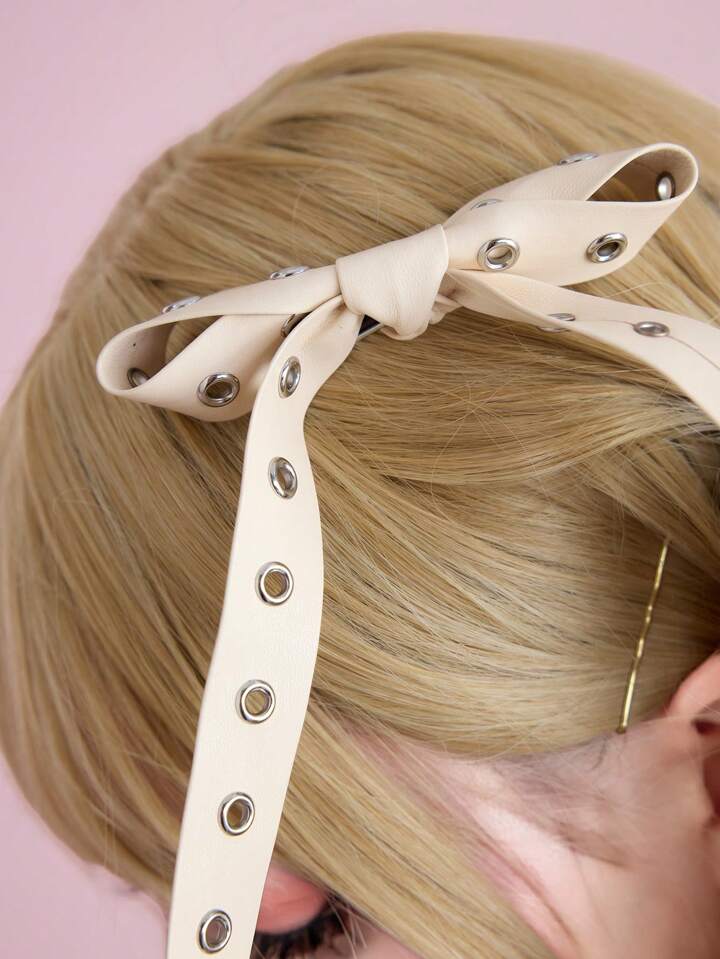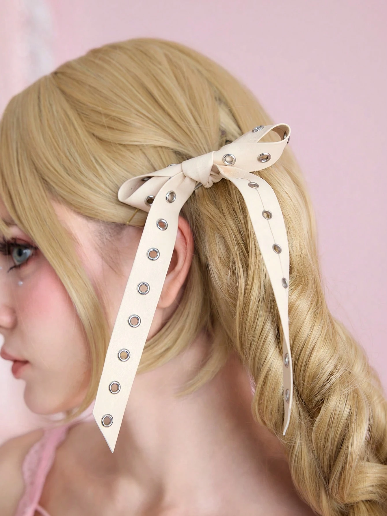 Grunge Punk 1pc Punk Style White Big Bow Long Ribbon Hair Clip, Y2K Edgy Round Hollow Rivet Duck Clip, Niche Design Hairpin Accessories Claw Clips Hair Slide Hair Barrettes