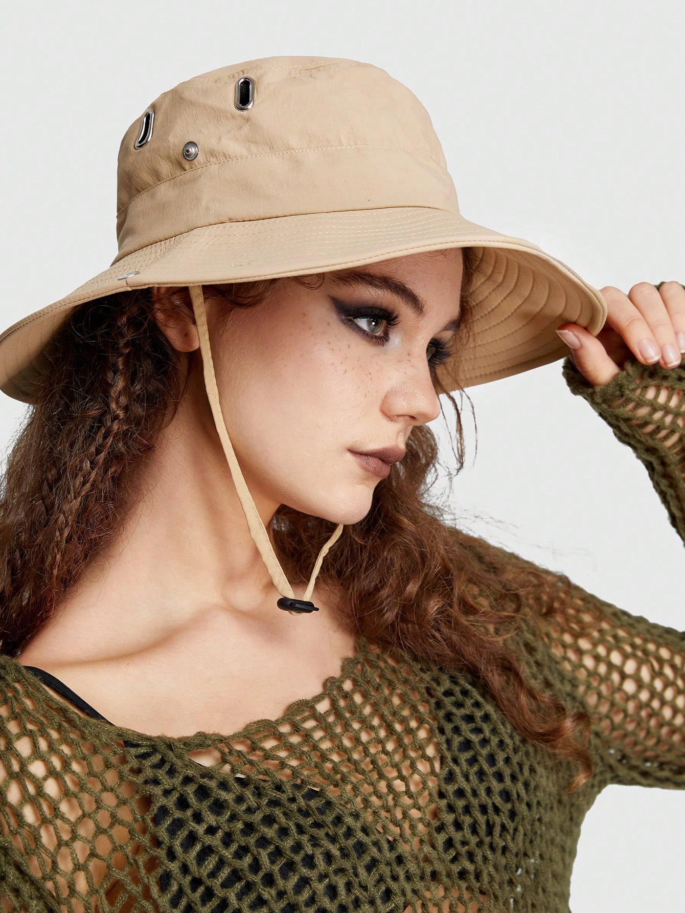 Grunge Punk 1pc Women Drawstring Decor Bucket Hat