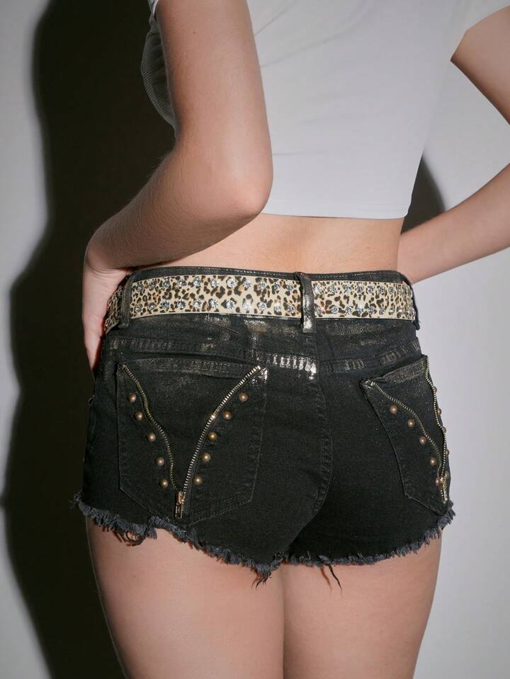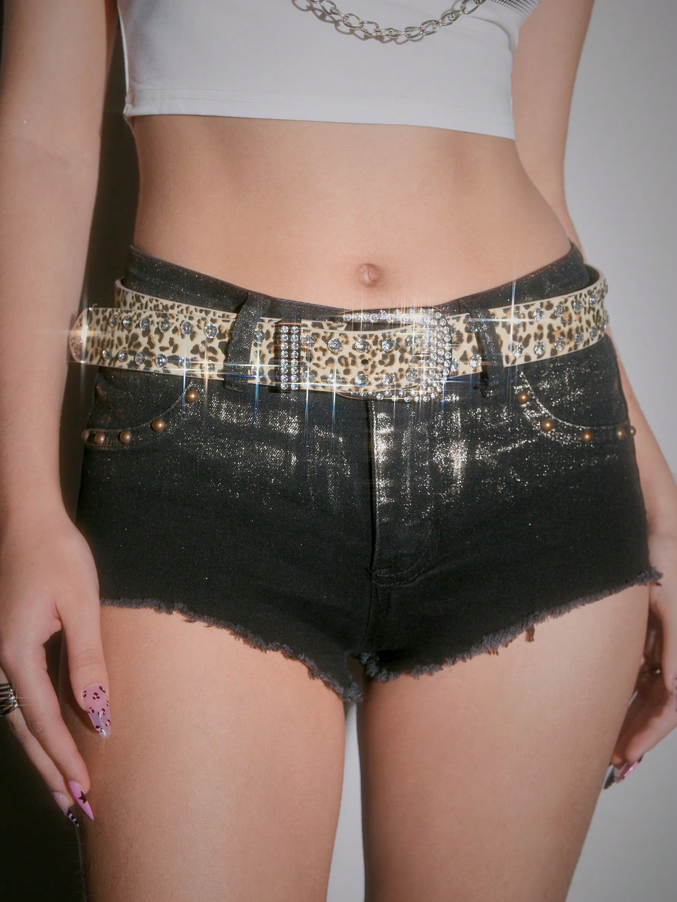 Grunge Punk 1pc Women's Leopard Rhinestone Embellished Waist Belt & Pants Belt, Suitable For Pants