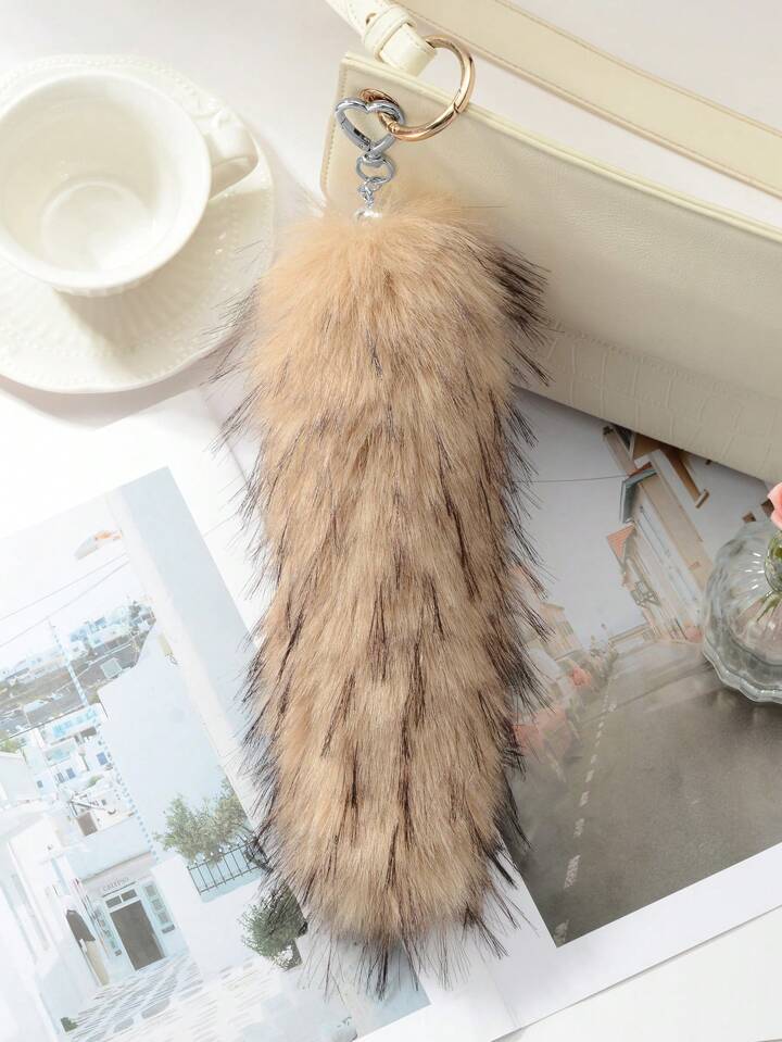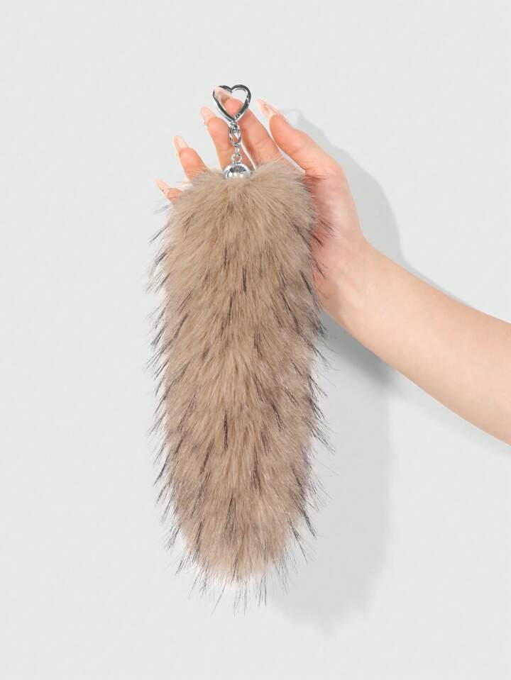 Grunge Punk 1pc Y2K Retro Fashion Personalized High-Quality Brown Fluffy Fox Tail Keychain & Keyring, Suitable For Women, Great As Daily Accessory Or Holiday Gift