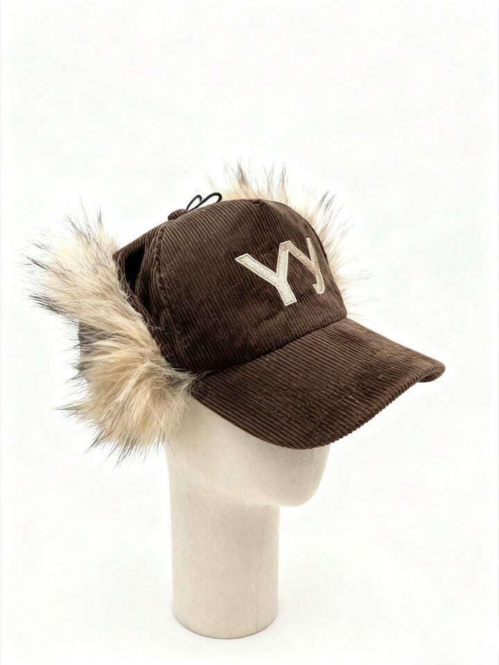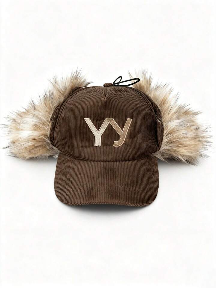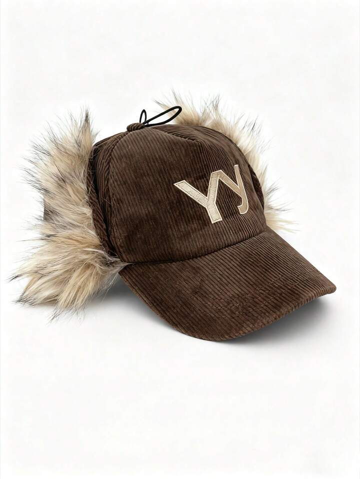 Grunge Punk 1pc Y2K Style Furry Patchwork Baseball Cap, Letter Embroidery Snapback Hat, Streetwear Adjustable Cap