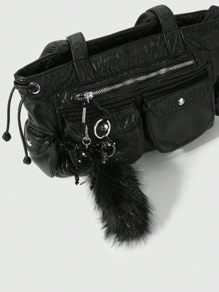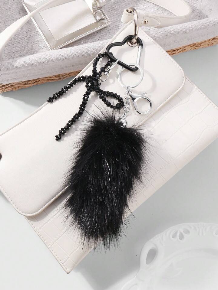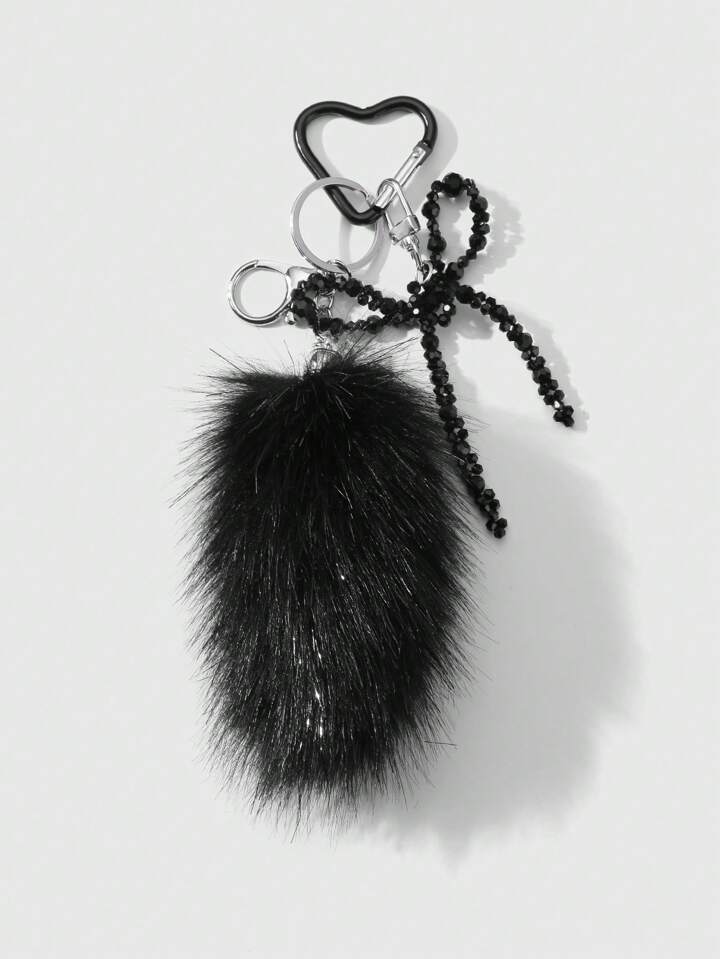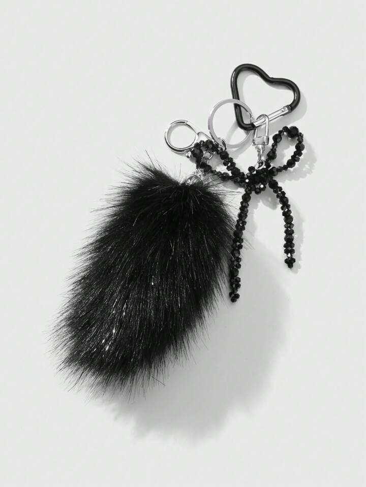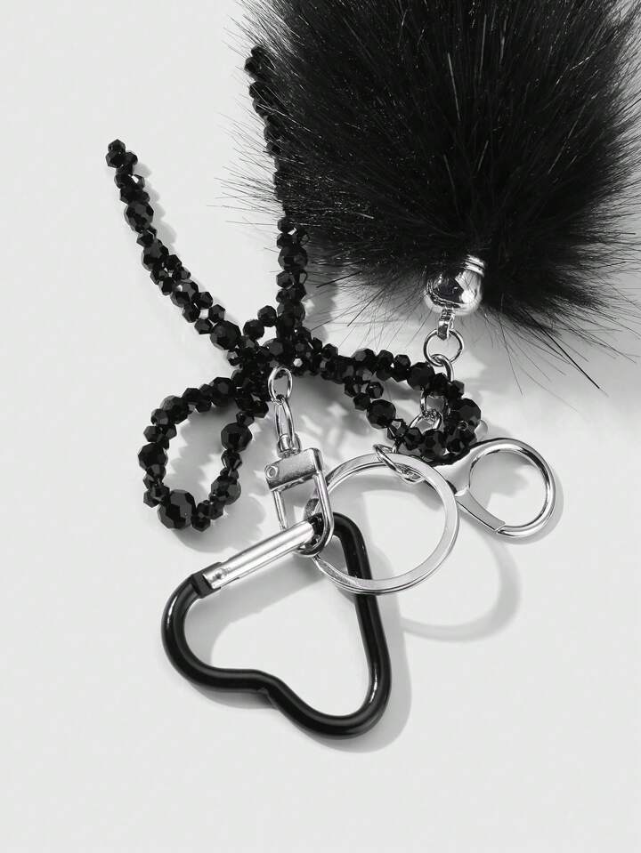 Grunge Punk 1pc Y2K Style Retro Luxury Gothic Handmade Beaded Black Crystal Faux Fur Tail Keychain, Elegant Decoration For Bag/Accessory, Gift For Women
