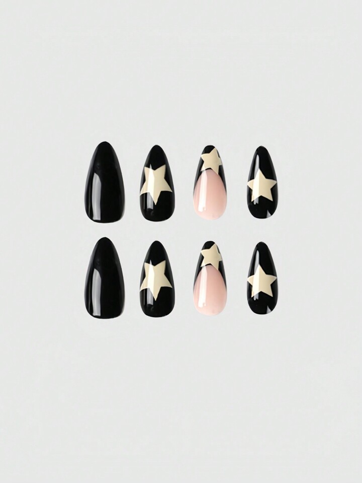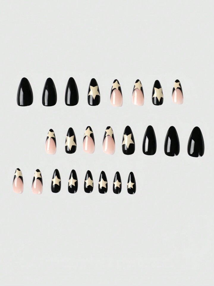 Grunge Punk 1set Women's French Style Elegant Five-Pointed Star False Nails
