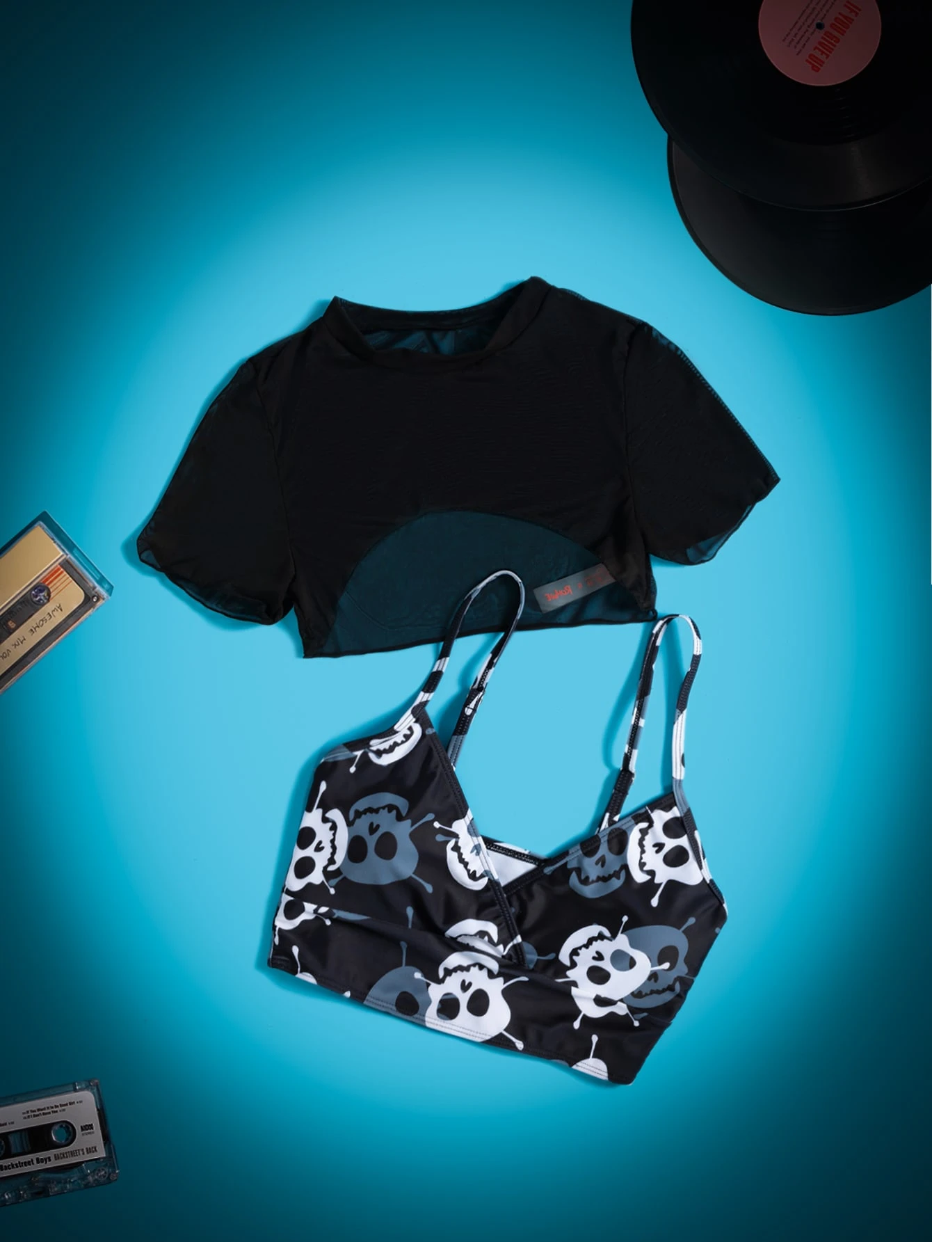 Grunge Punk 2 Packs Skull Print Bikini Top & Cover Up Top