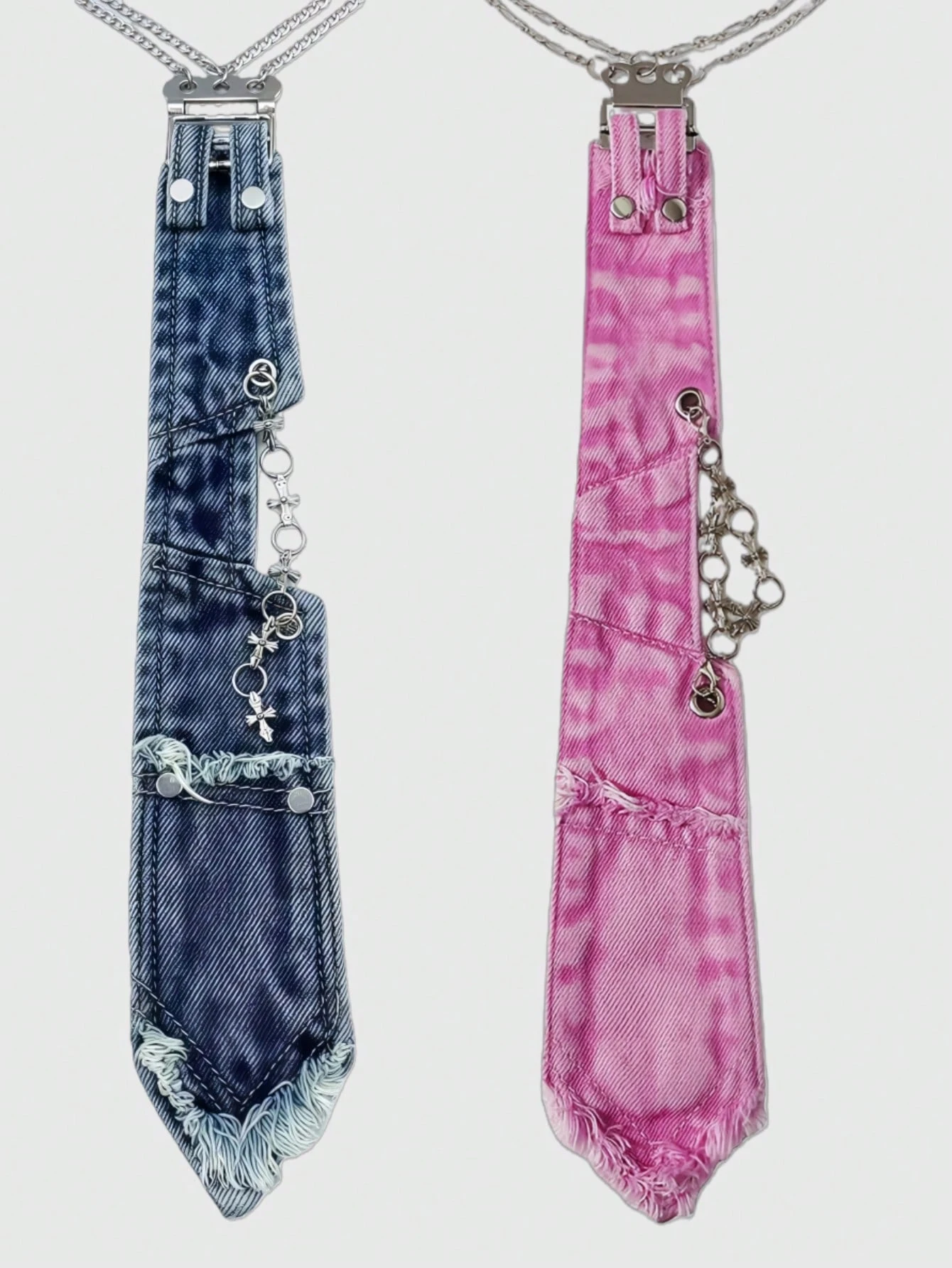Grunge Punk 2Pc Blue And Pink Y2K Millennium Spice Girl Multi-Gas Eye Cross Metal Decoration Rough Edge Splicing Old Fashion Simple Couple Tie Combination, Suitable For College, Shopping, Commuting, Parties, Etc