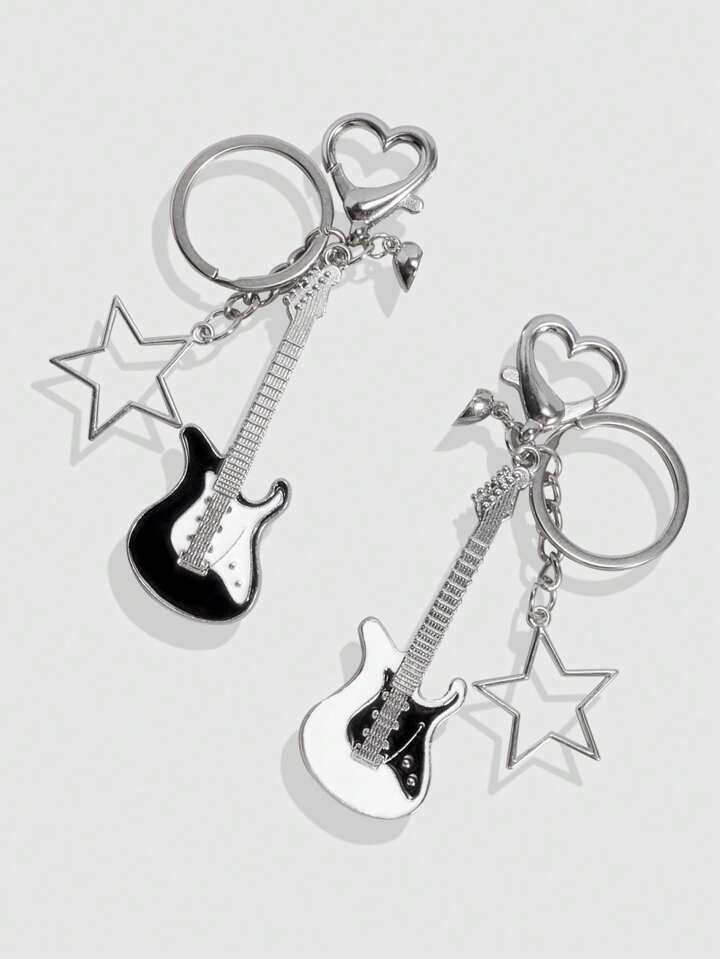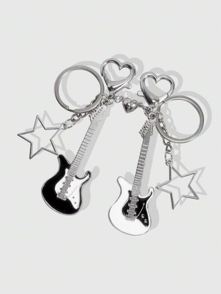 Grunge Punk 2pcs Y2K Guitar Keychain, Suitable For Couples Or Friendship Keychains