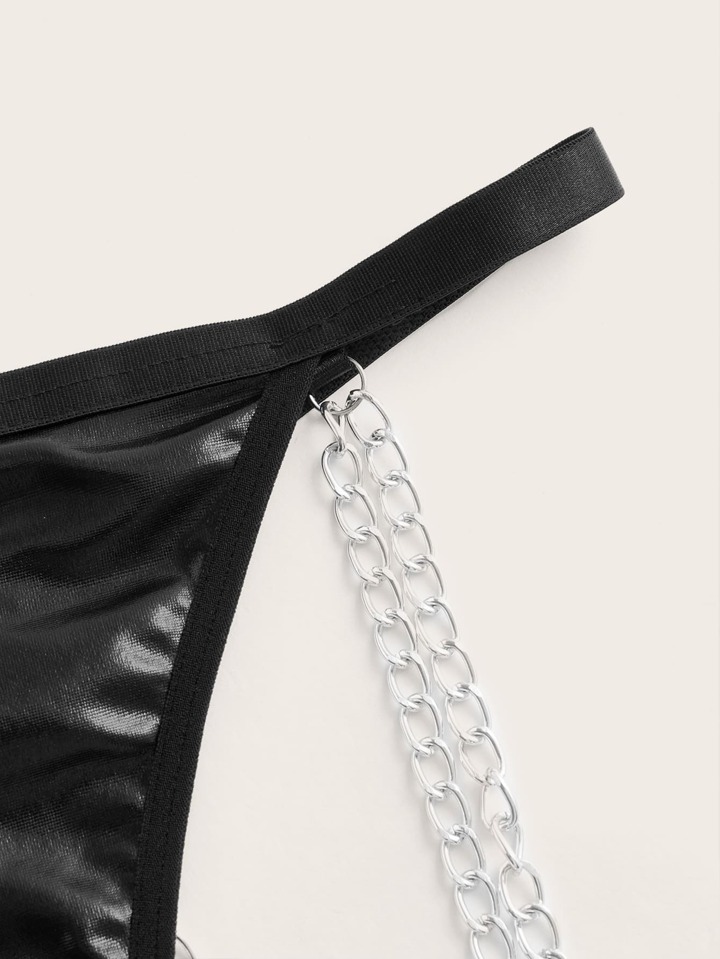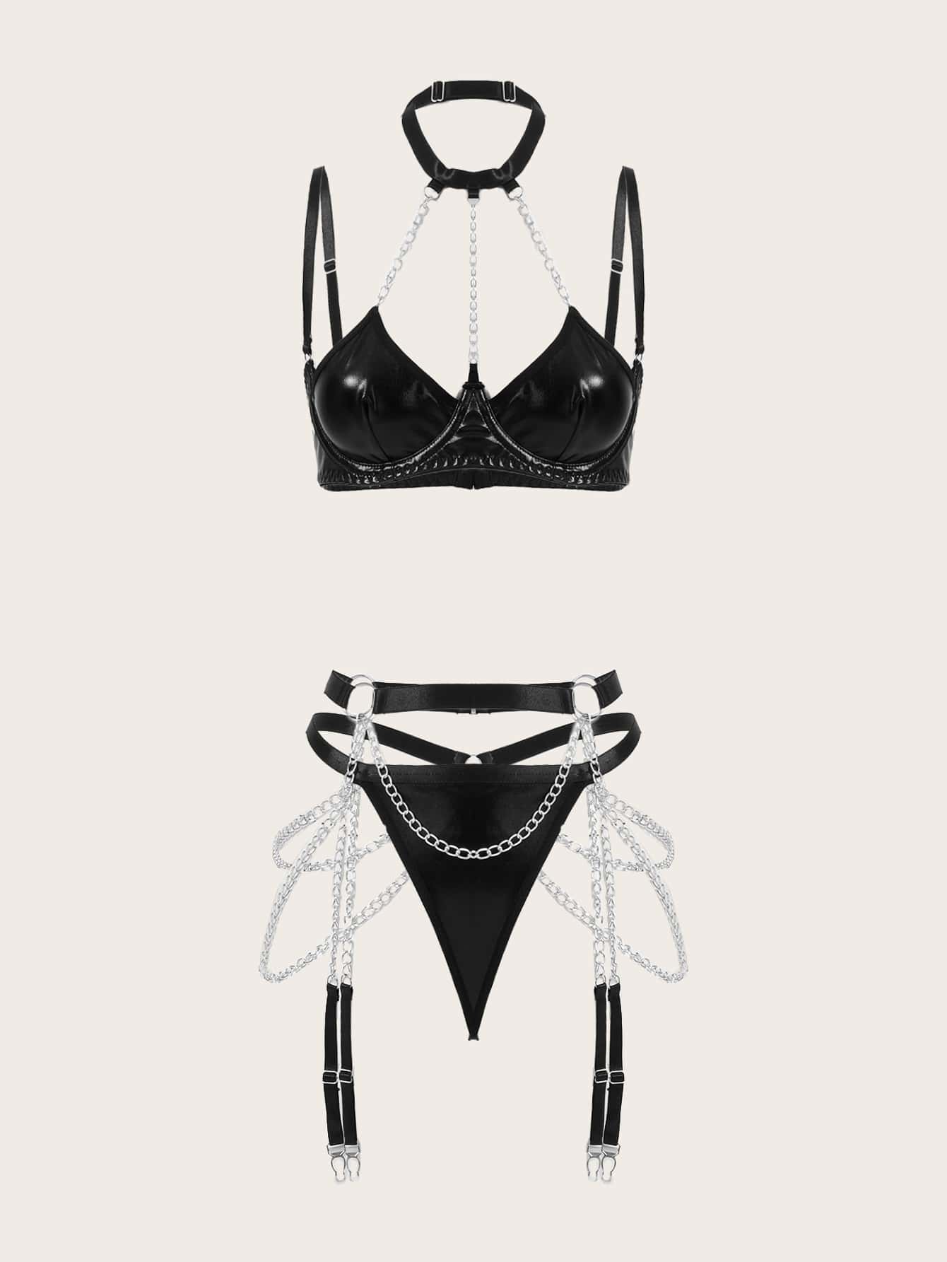 Grunge Punk 3pack Chain Decor PU Harness Lingerie Set