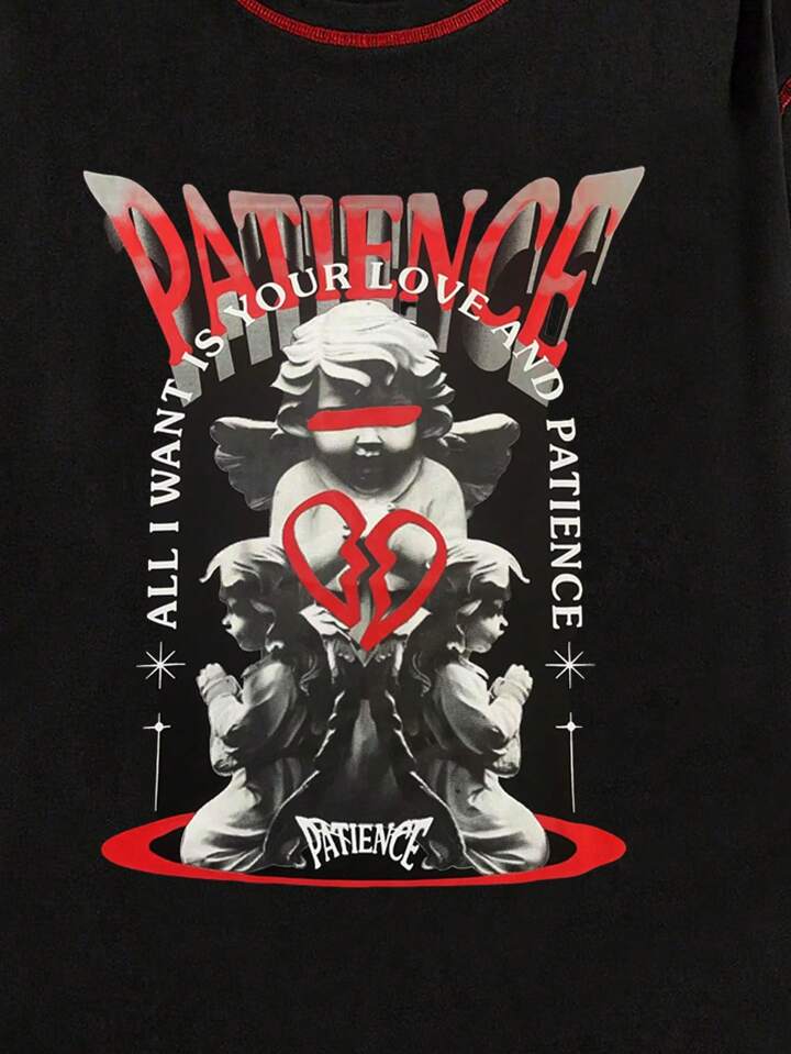 Grunge Punk Angel Slogan Printed Men T-Shirt