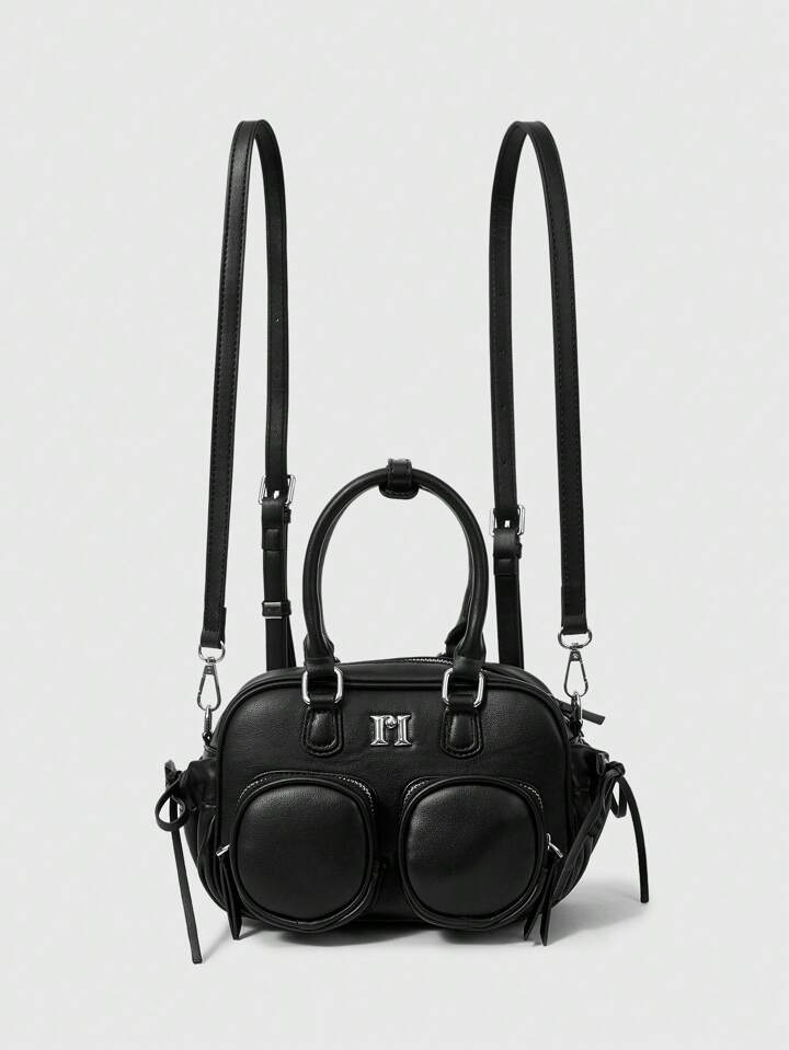 Grunge Punk Black Fashionable Versatile Dual Pocket Handbag