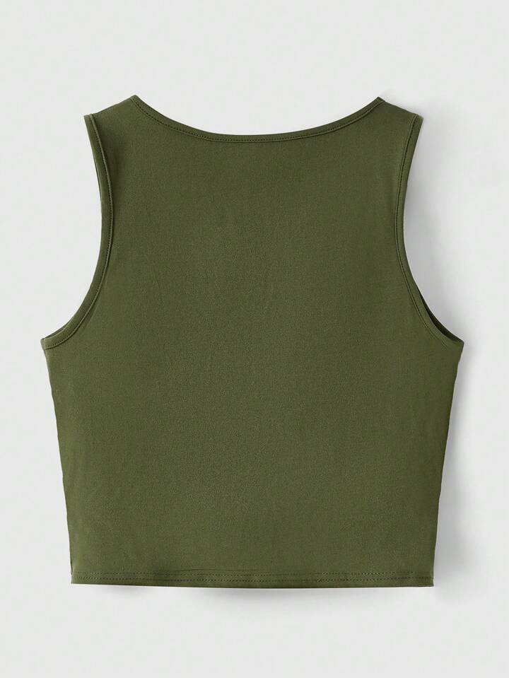 Grunge Punk Casual Street Wear Full Stars Print Round Neck Green Stretchy Tight Women's Tank Top