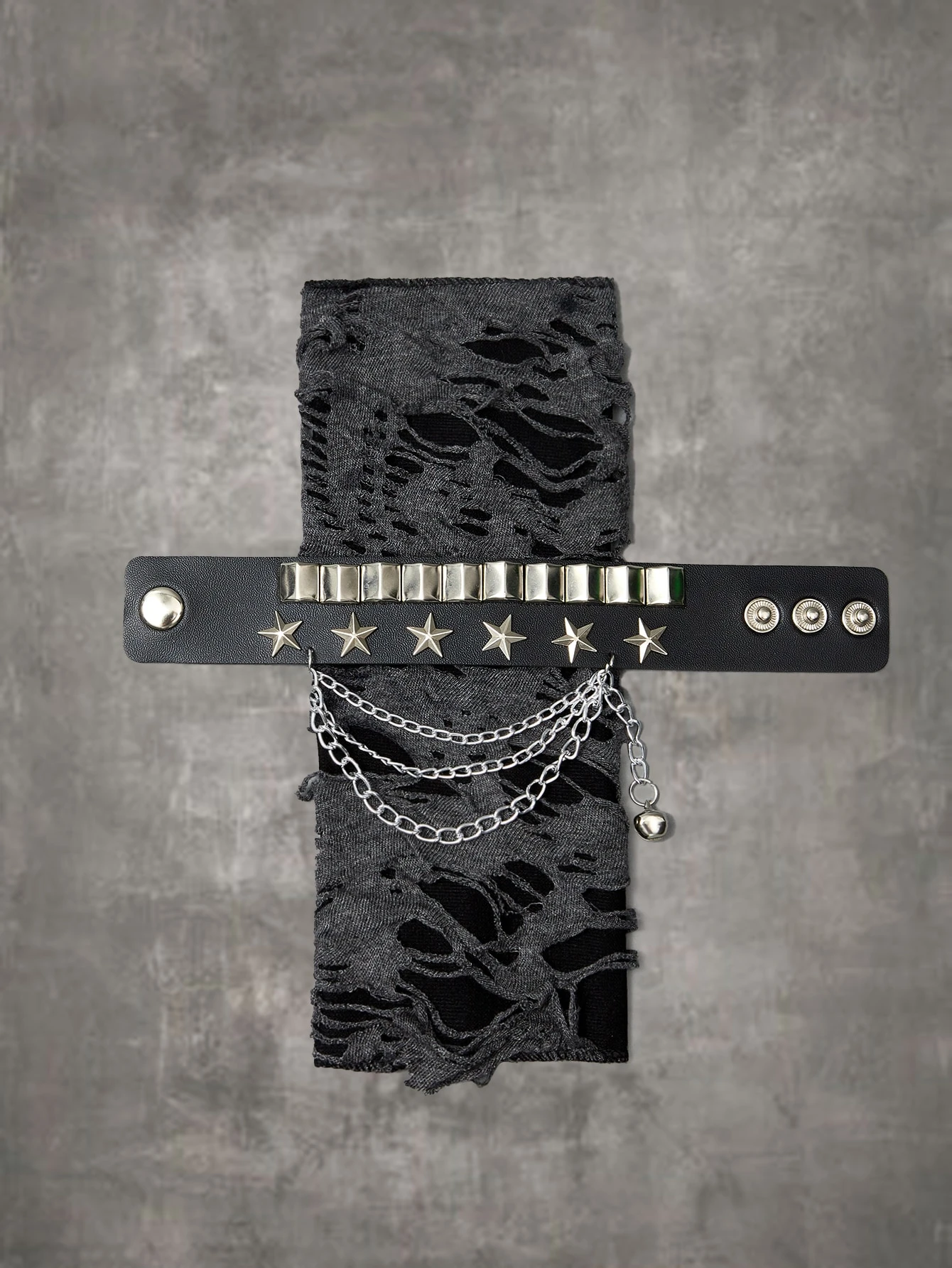 Grunge Punk Chain & Star Decor Bracelet & Ripped Arm Sleeves