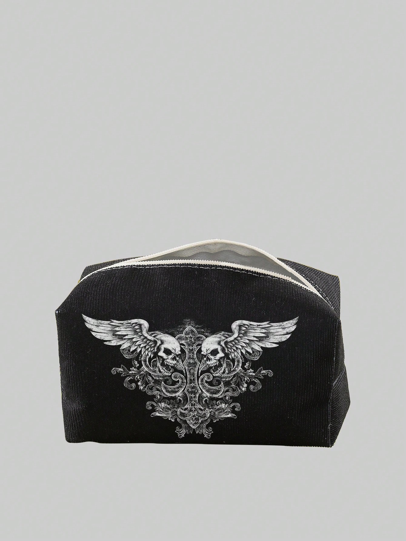 Grunge Punk Creative Cross & Skull Print Octagonal Velvet Makeup Bag