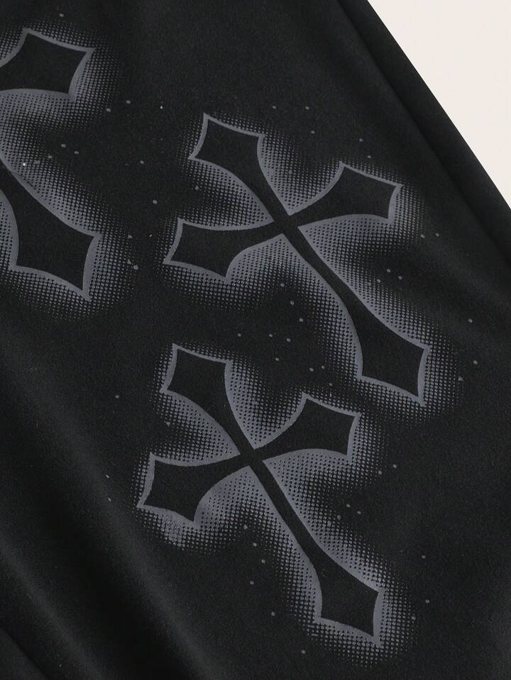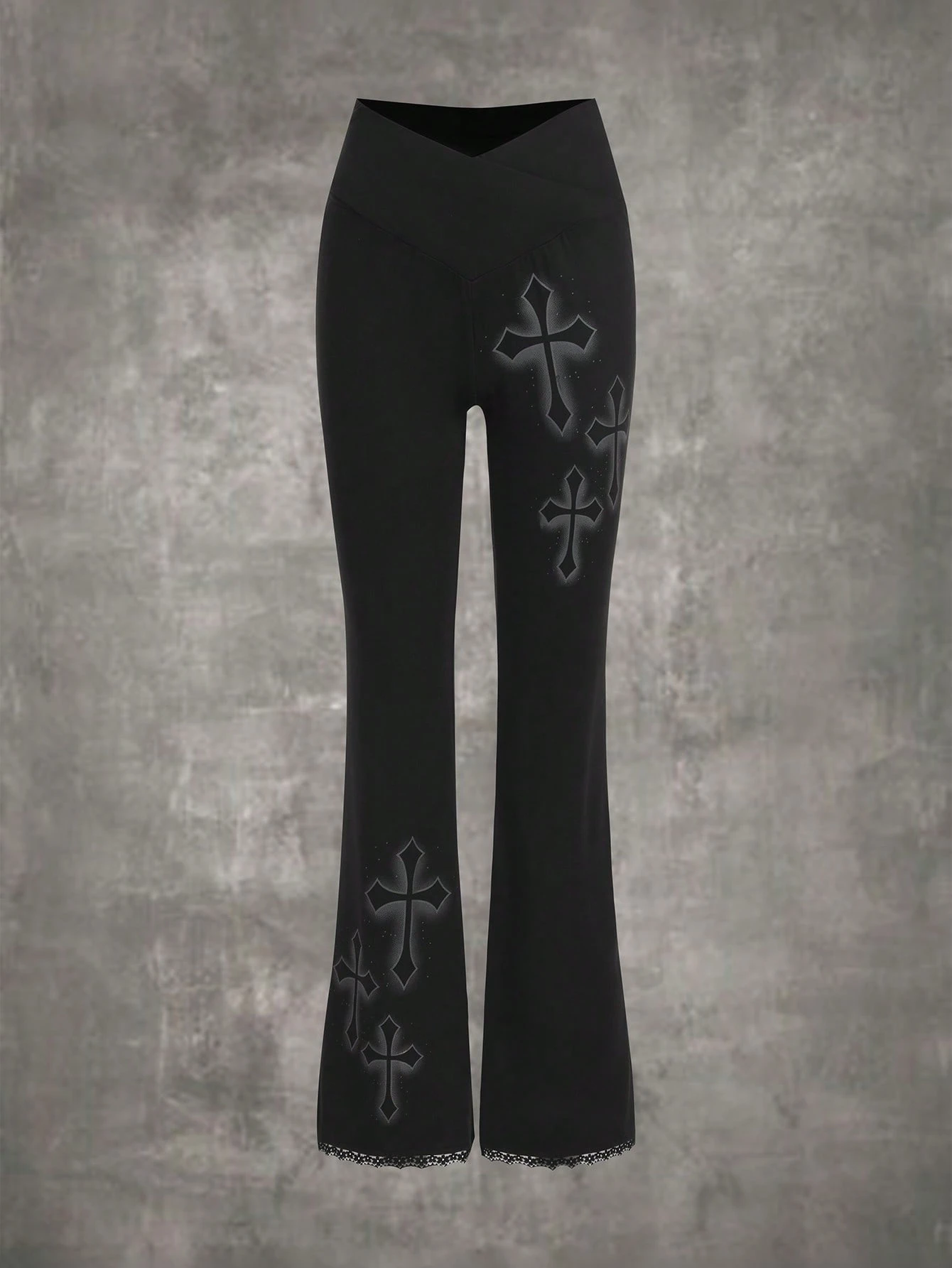 Grunge Punk Cross Print Flare Leg Pants
