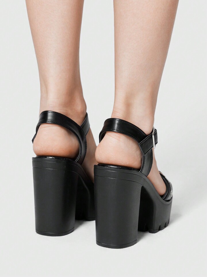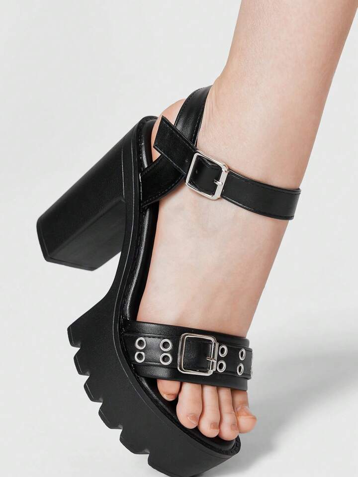 Grunge Punk Dark Gothic Strappy Open Toe Gladiator Sandals, Women's Punk Rock Thick Heel Dressy Office Work Party Platform Studded Buckle Strap High Heel Sandals