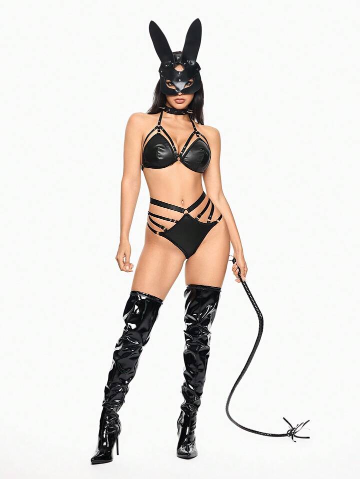 Grunge Punk Dark Punk Eyelet Strap Triangle Cup Bra & Panty Sexy Lingerie Set