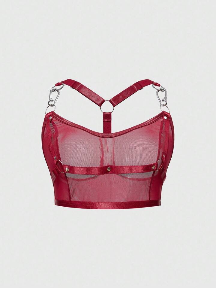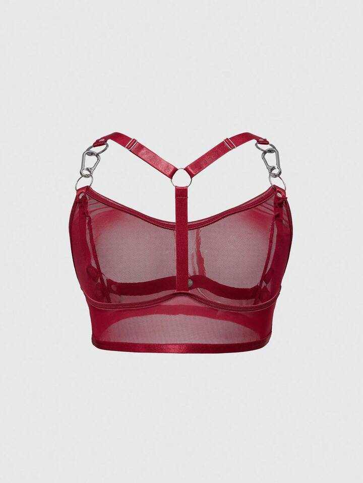 Grunge Punk Dark Punk Music Festival Mesh Metal Ring Sheer Sexy Bralette