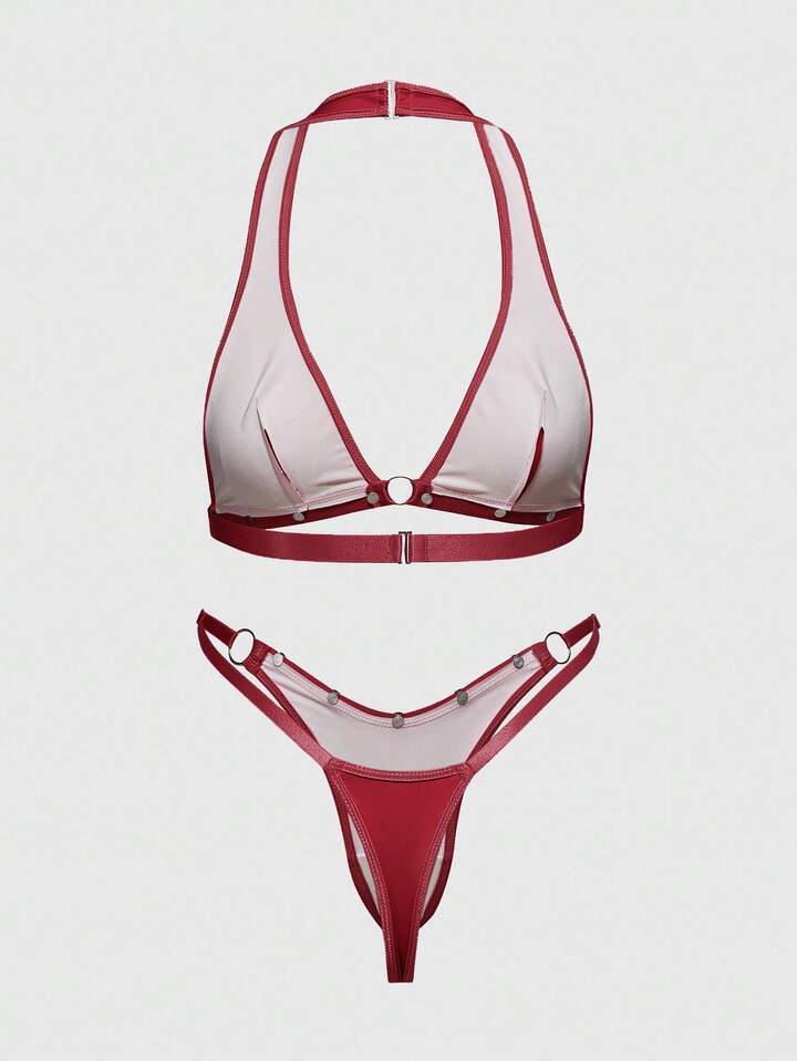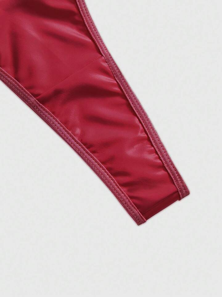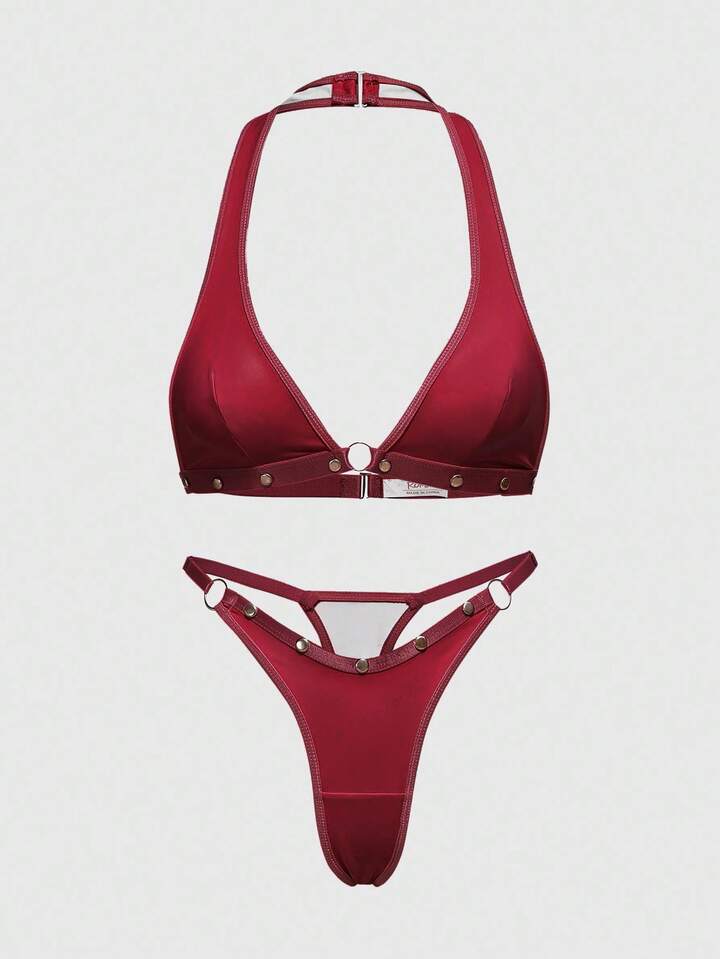 Grunge Punk Dark Punk PU Studded Bralette And Thong Lingerie Set, Sexy