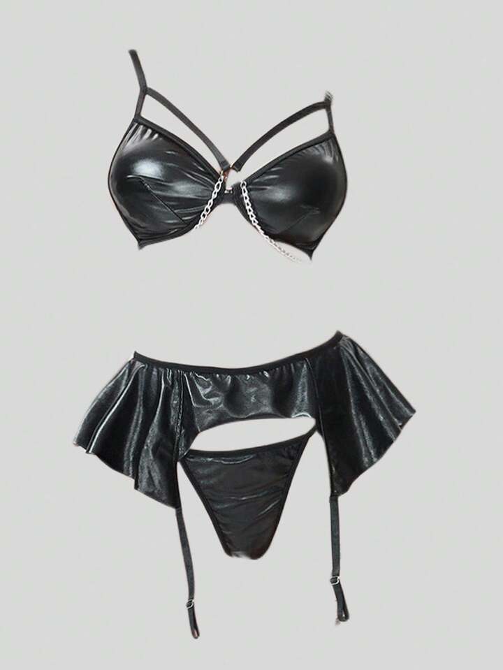 Grunge Punk Dark Punk PU Underwire Bodysuits & G-String Garter Belts Sexy Lingerie Set