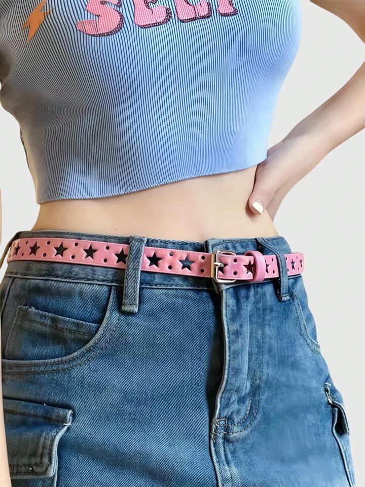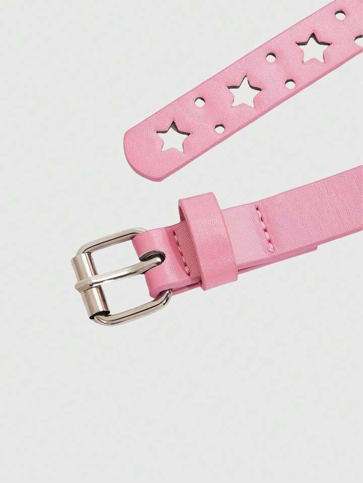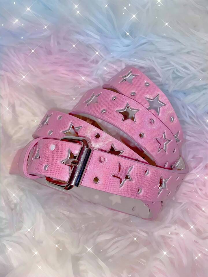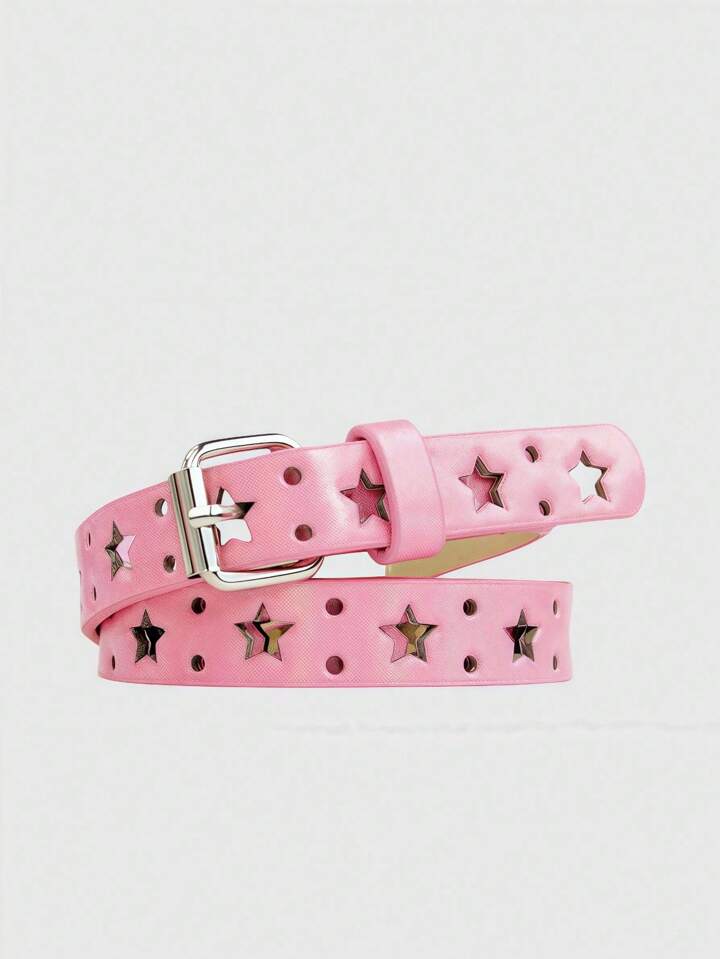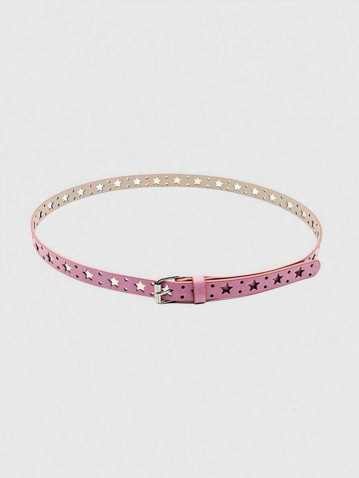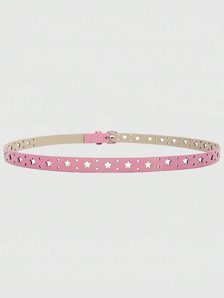 Grunge Punk Dopamine Pink Star Hollow Pin Buckle Thin Waist Belt, Minimalist Versatile Casual Chic Accessory Suitable For Travel, Vacation, Social Events, Photo Shoots