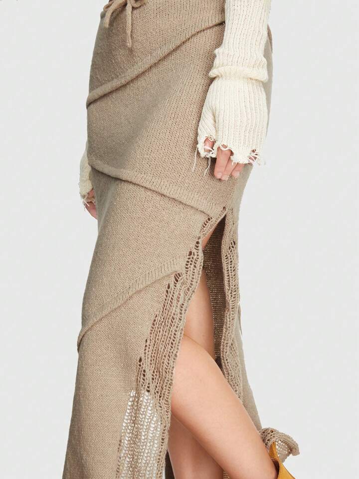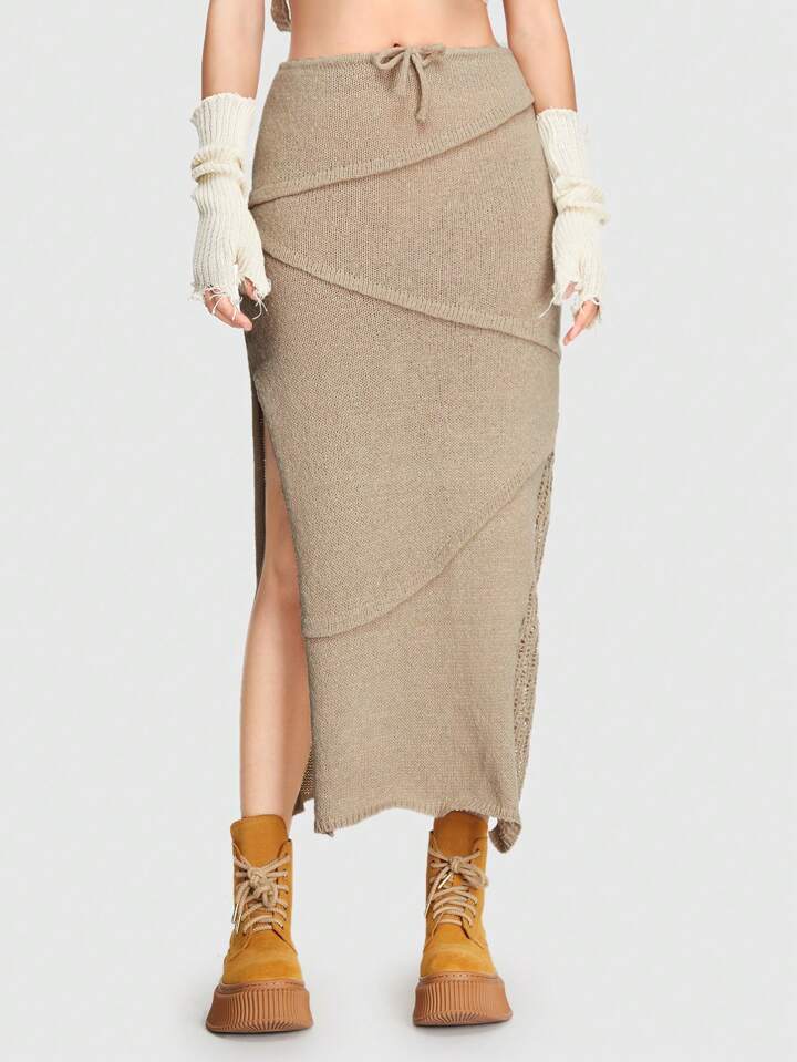 Grunge Punk Drawstring Waist Split Thigh Sweater Skirt