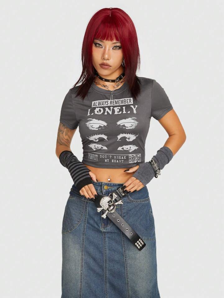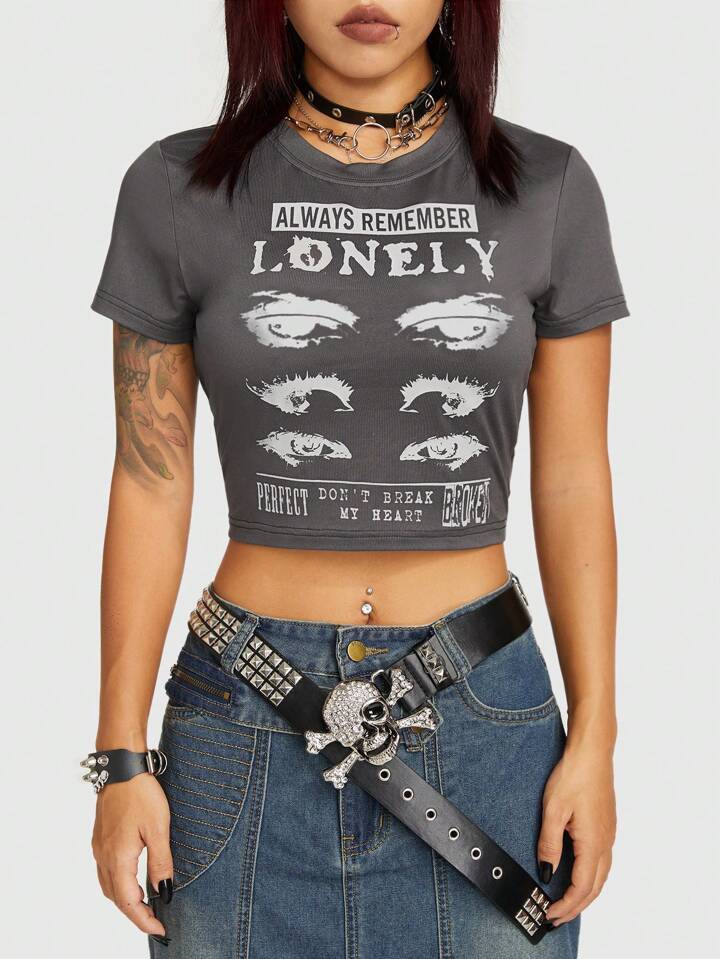 Grunge Punk Eye & Letter Graphic Crop Tee