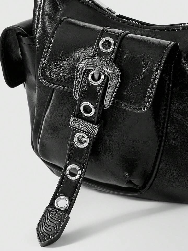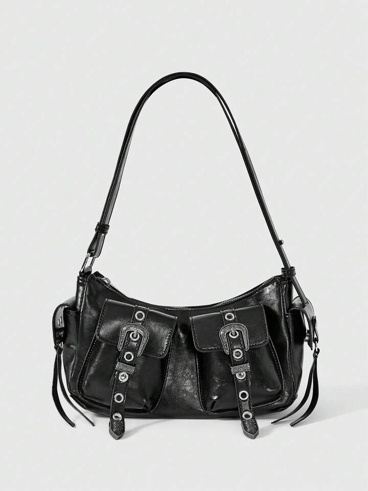 Grunge Punk Fashionable Commuter Punk Style Black Shoulder Bag