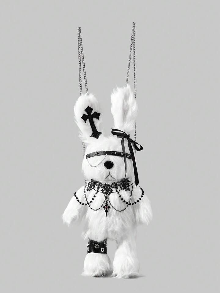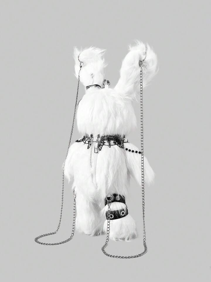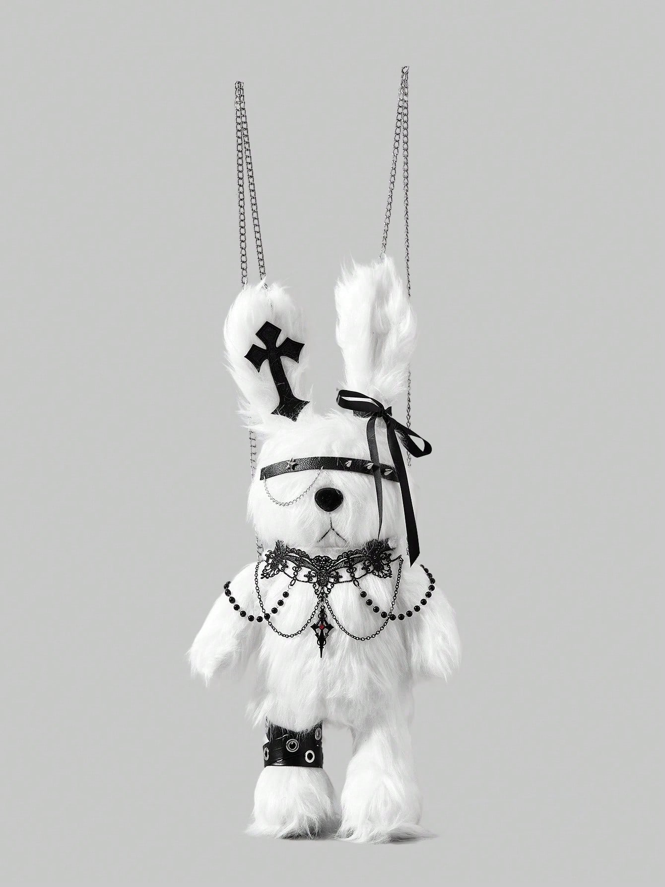 Grunge Punk Fashionable Furry Chain Decor Dark Rabbit Rivet Backpack