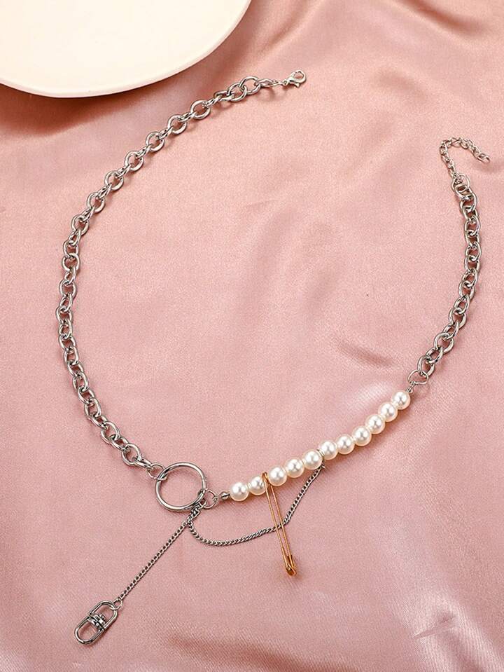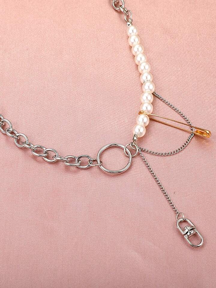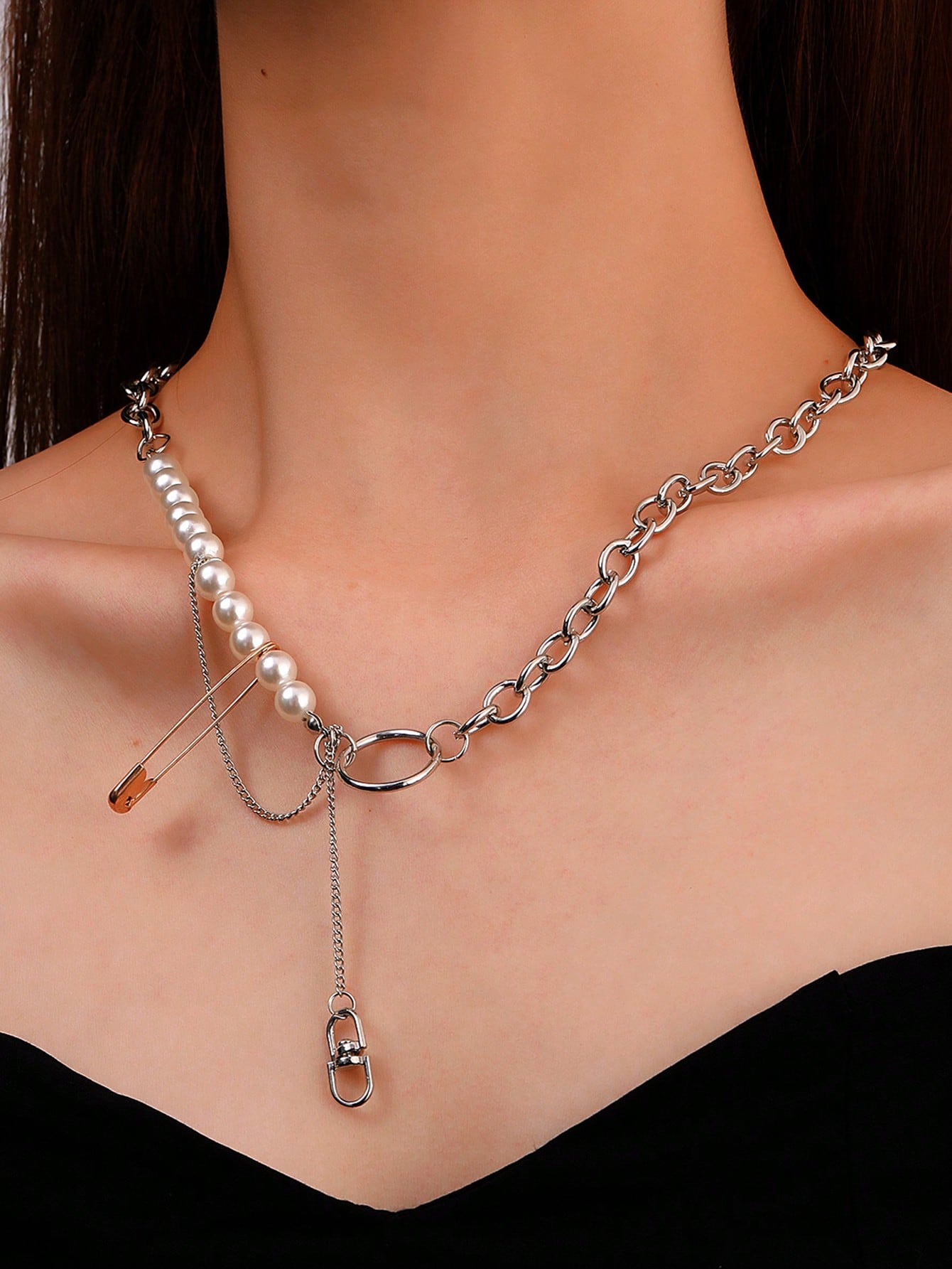 Grunge Punk Faux Pearl Decor Y Lariat Necklace