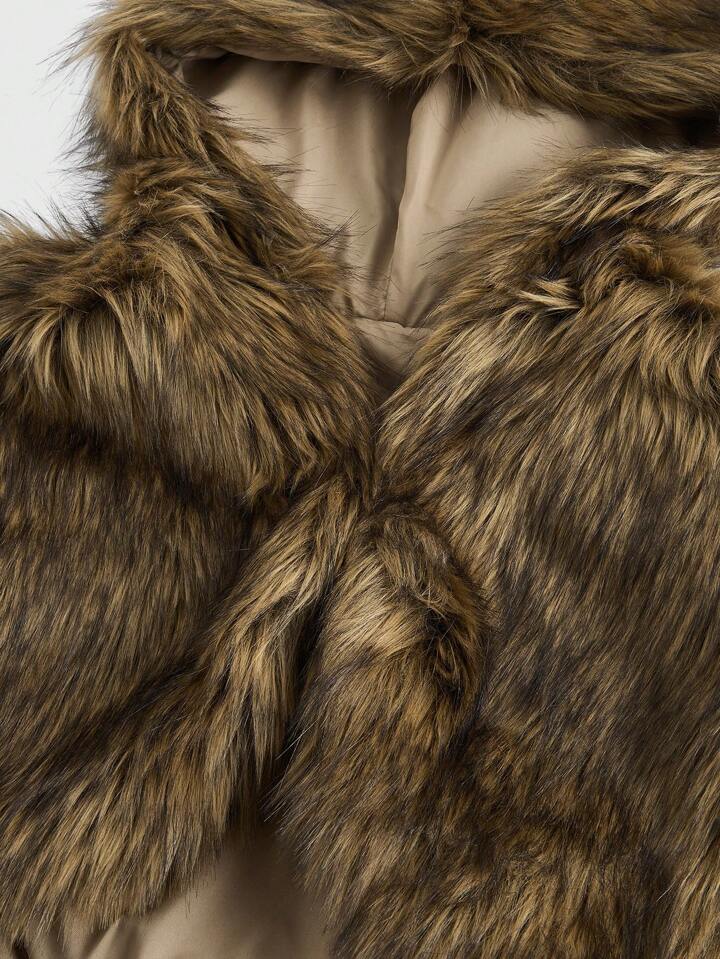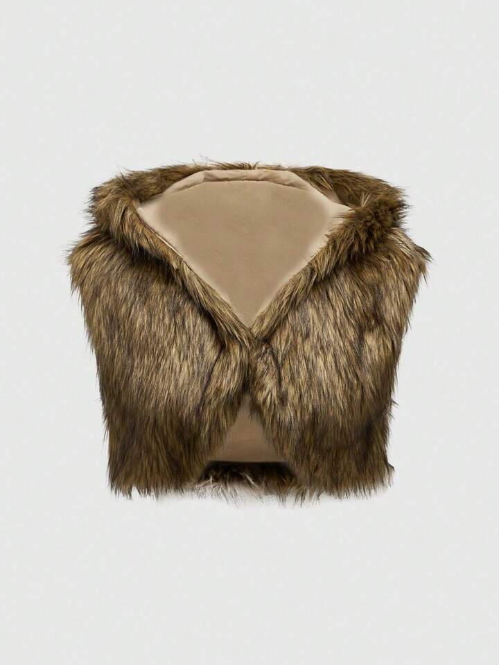 Grunge Punk Furry Hooded Cropped Vest For Women, Sexy Party Festival
