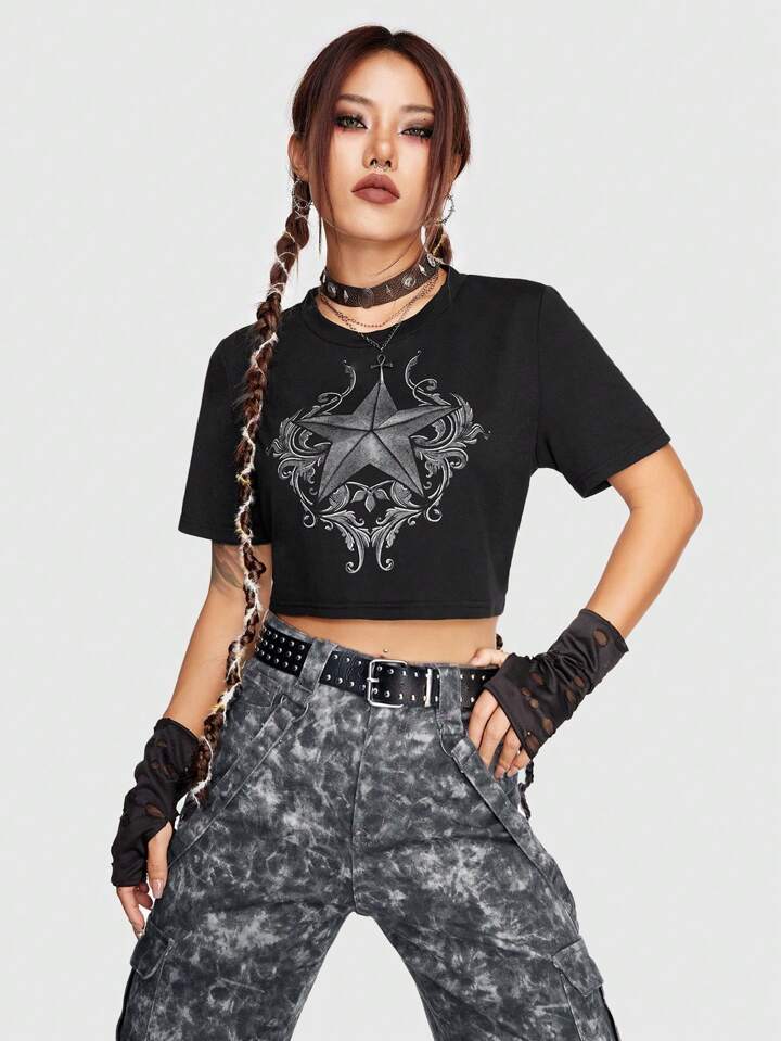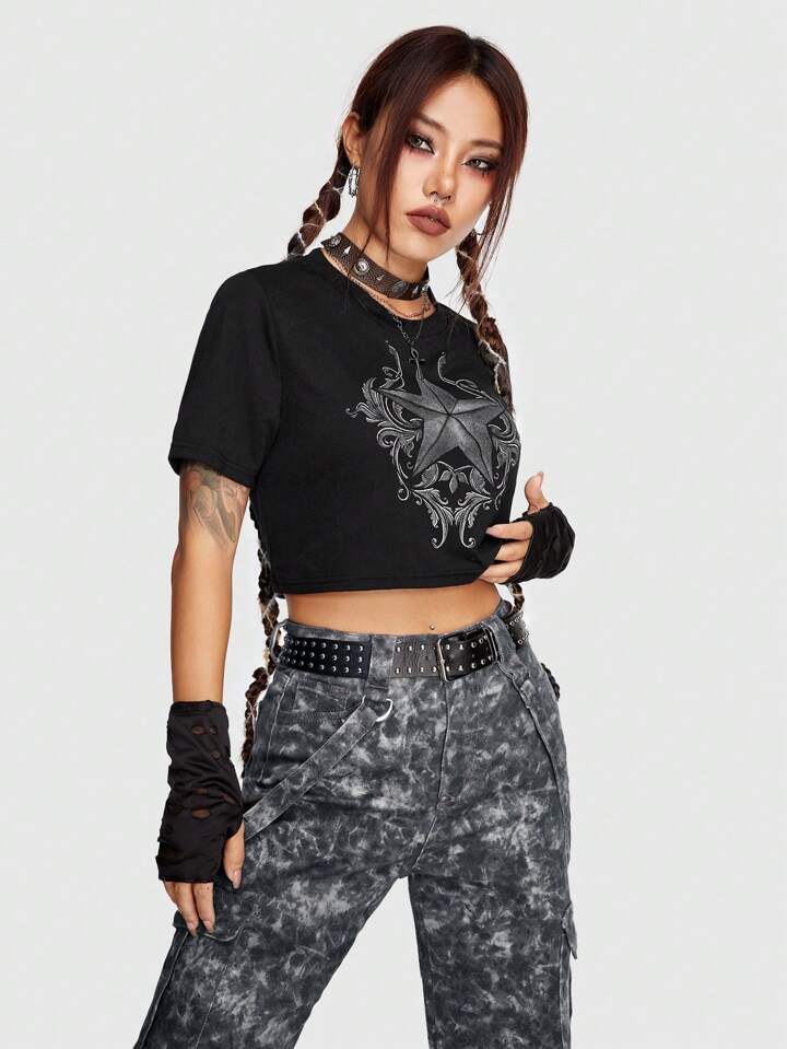 Grunge Punk Graphic Crop Tee