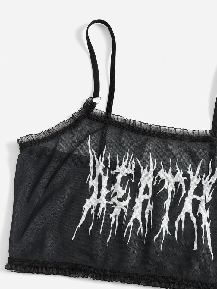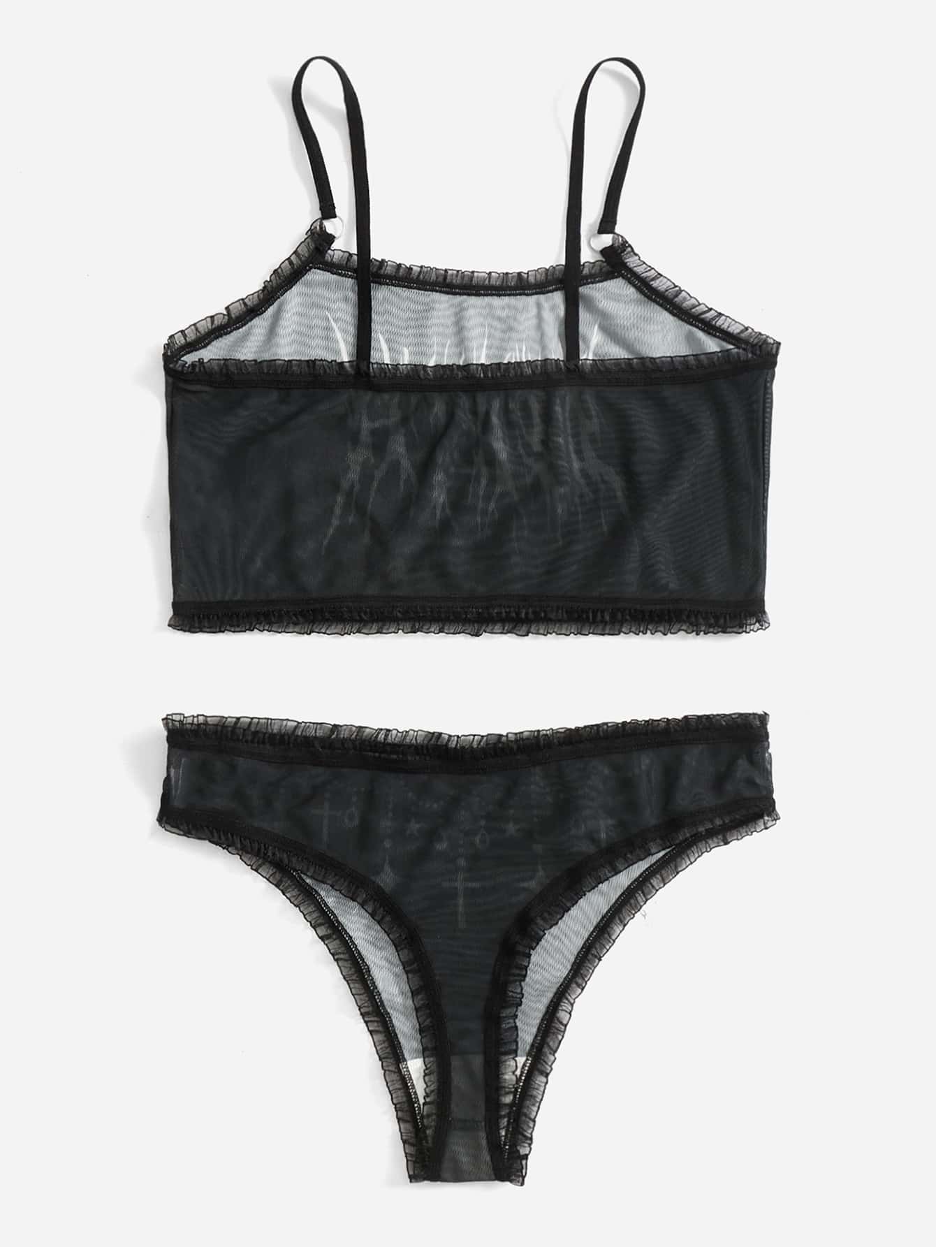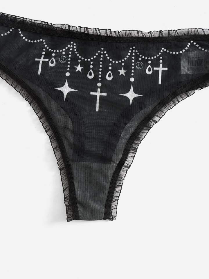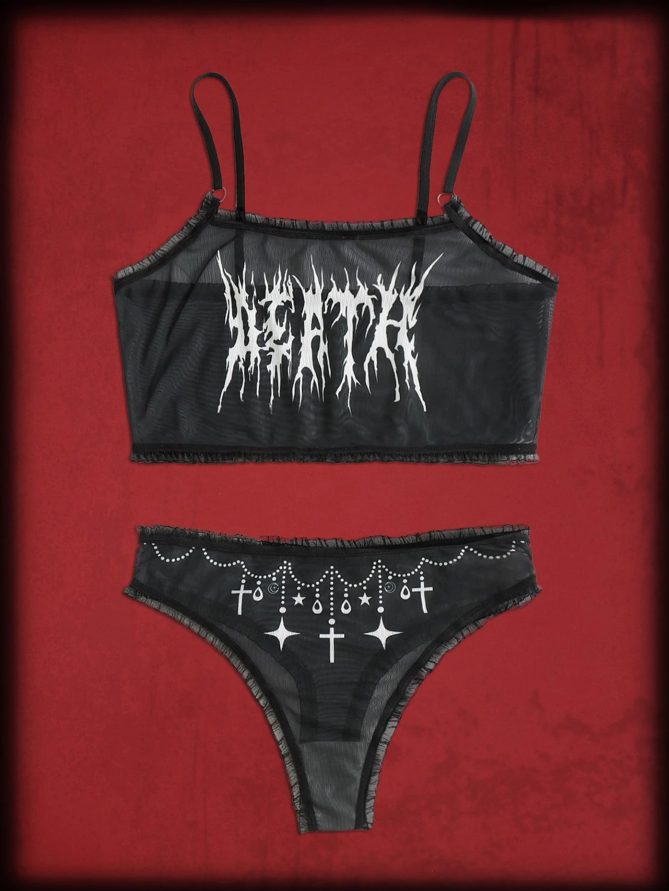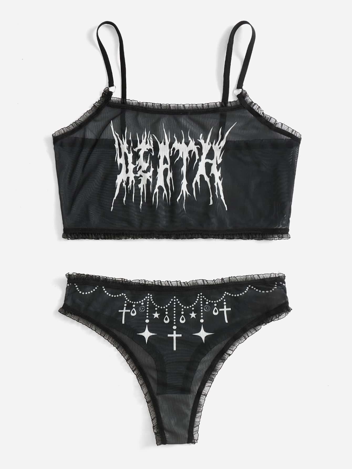 Grunge Punk Graphic Frill Trim Lingerie Set