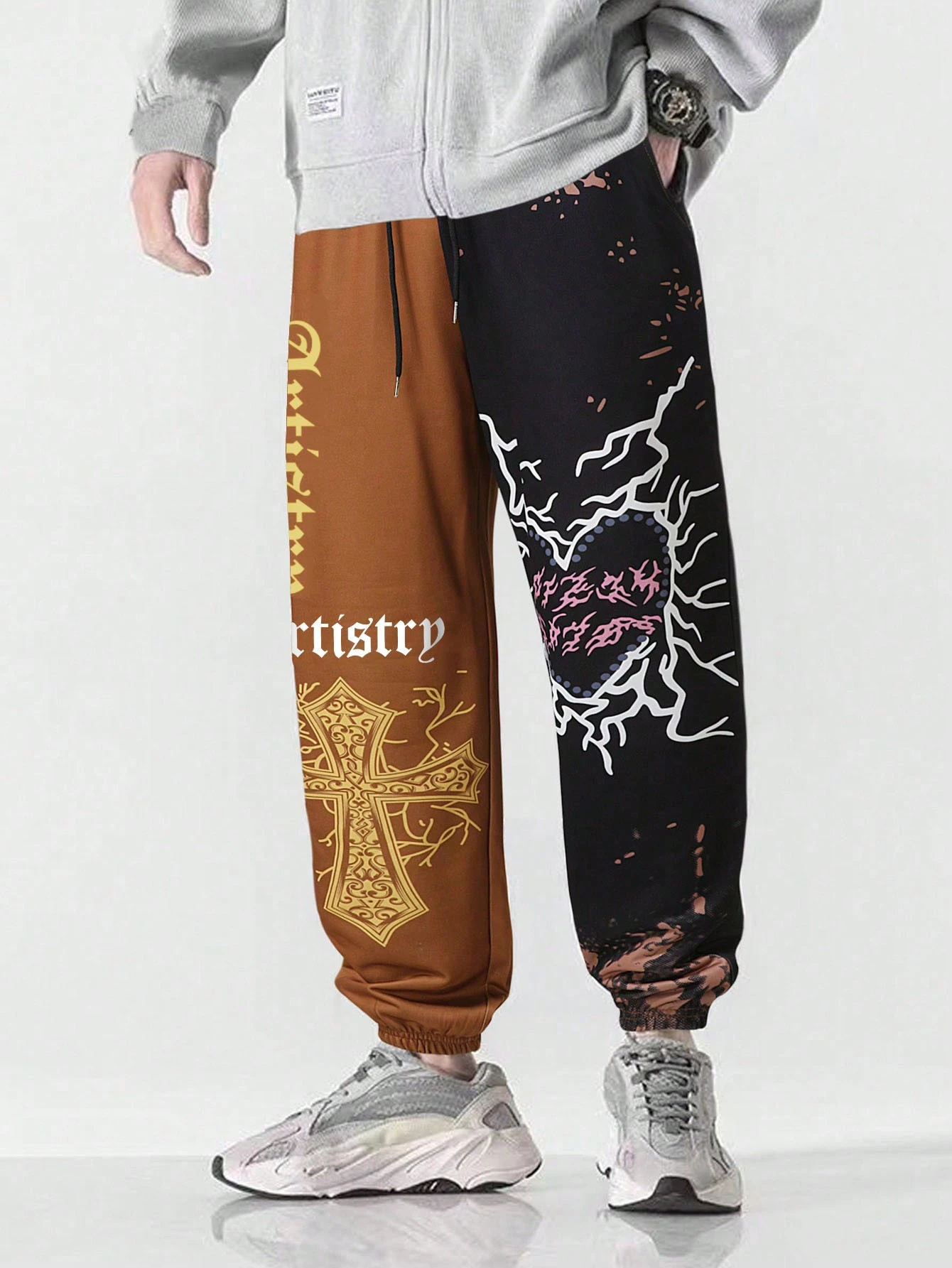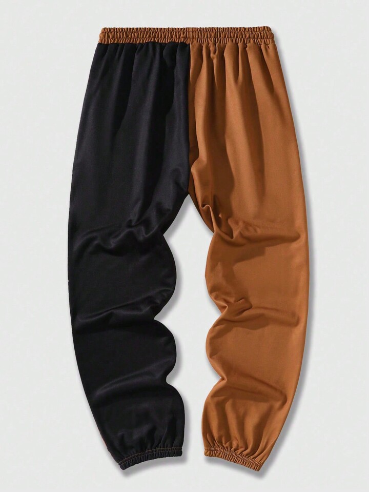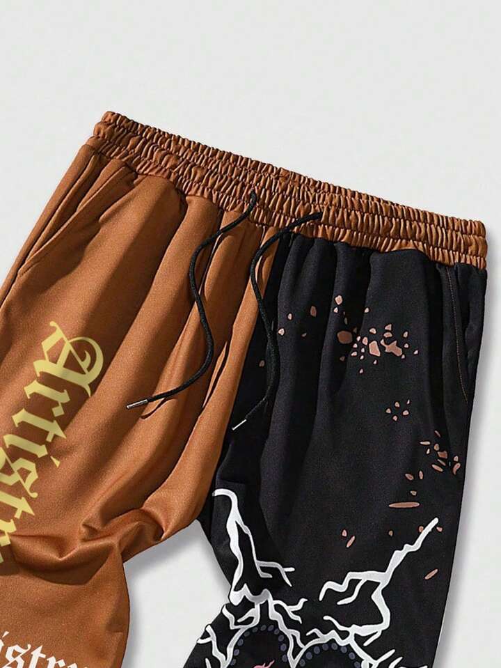 Grunge Punk Guys Letter Graphic Two Tone Drawstring Waist Sweatpants