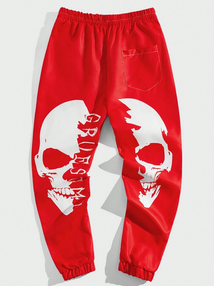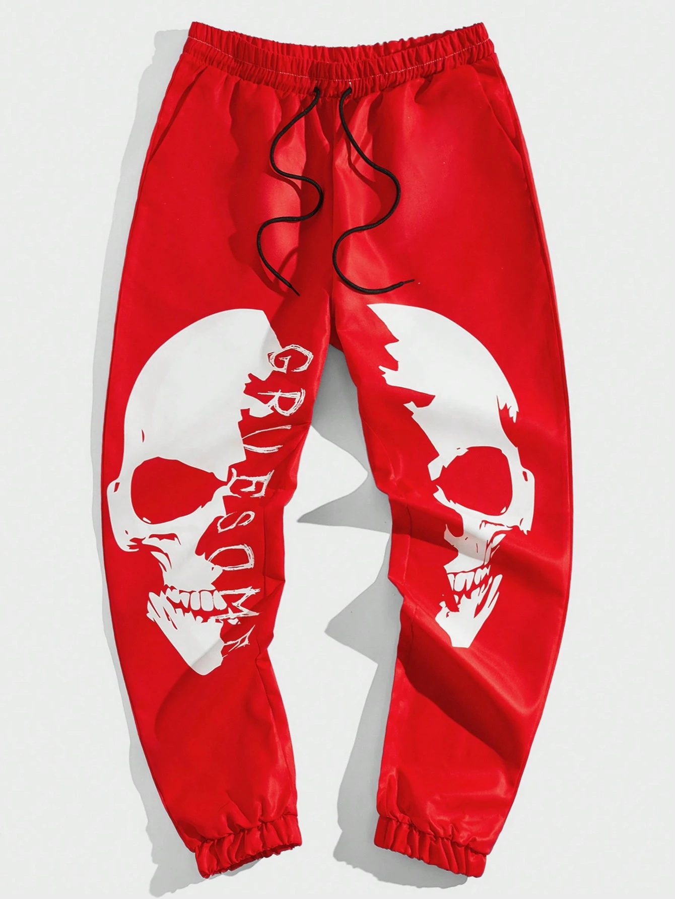 Grunge Punk Guys Skull & Letter Graphic Drawstring Waist Pants