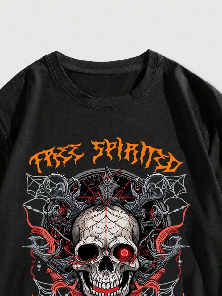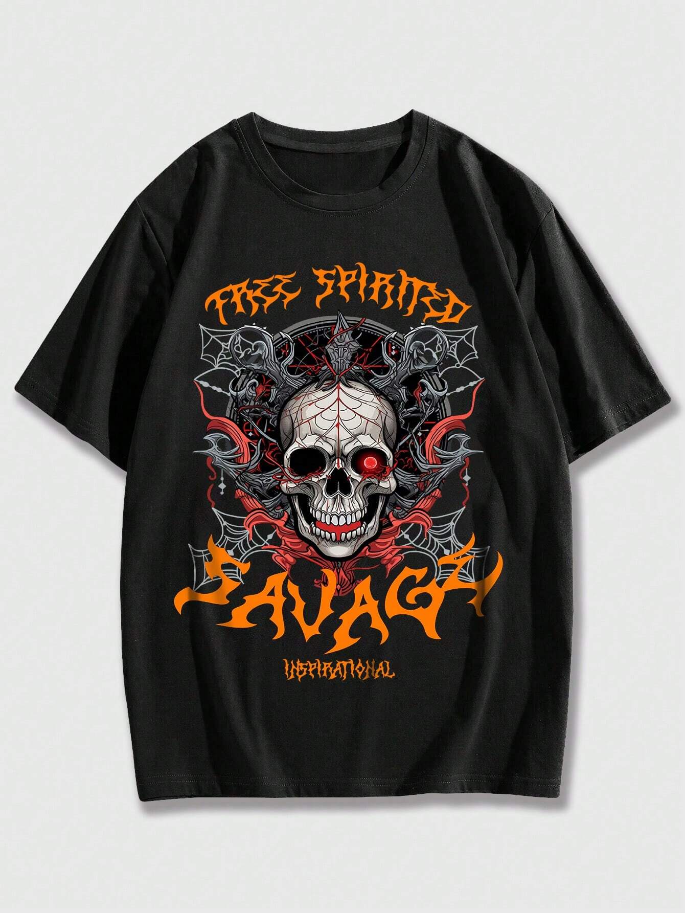 Grunge Punk Guys Skull & Letter Graphic Tee