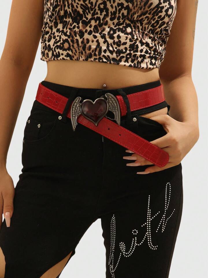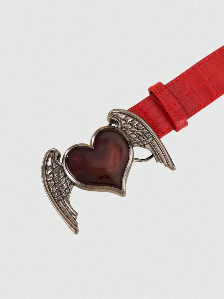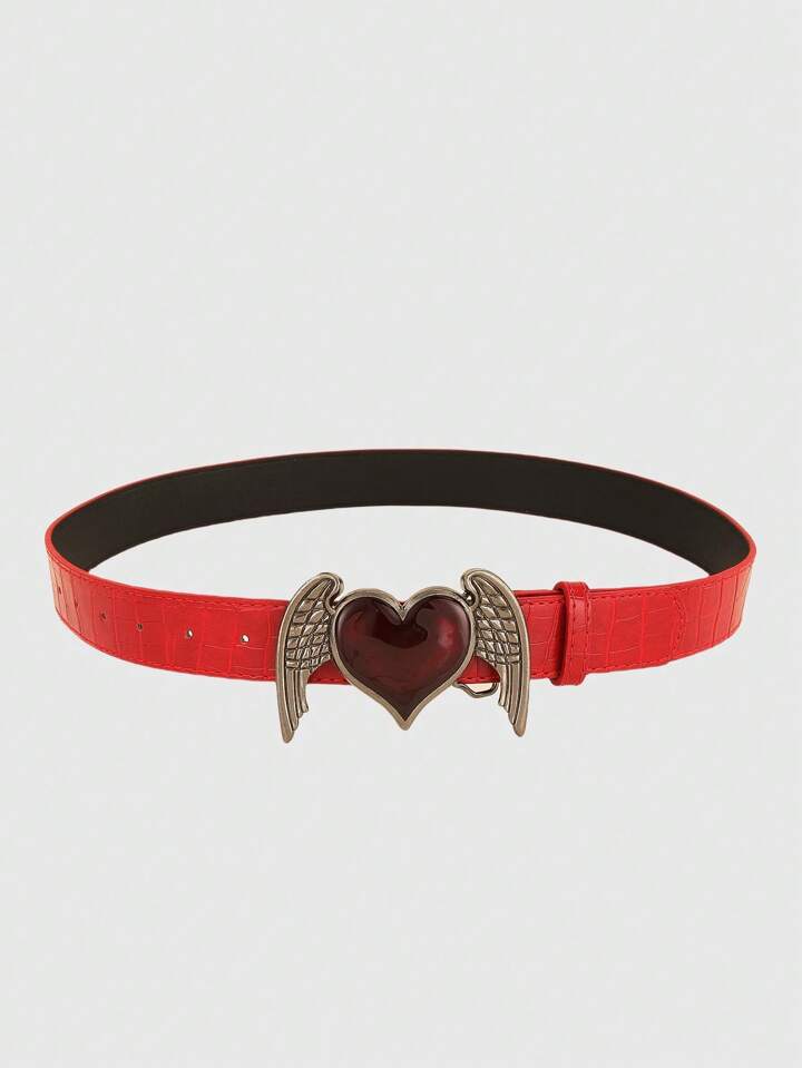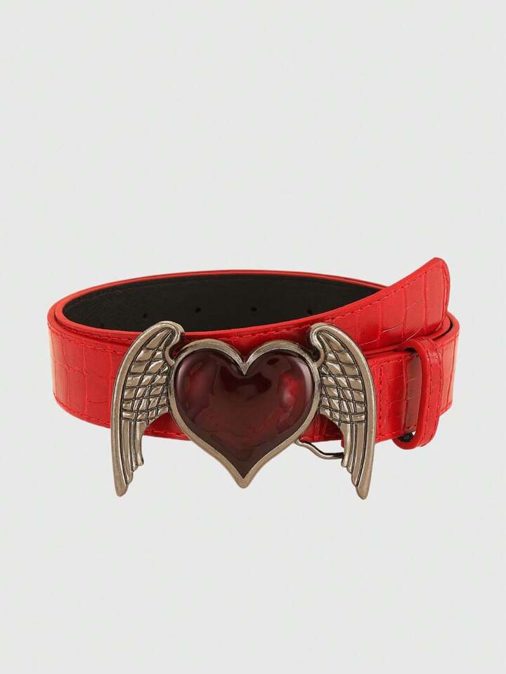 Grunge Punk Heart-Shape Wing Decor Women's Casual Multipurpose Waist Belt