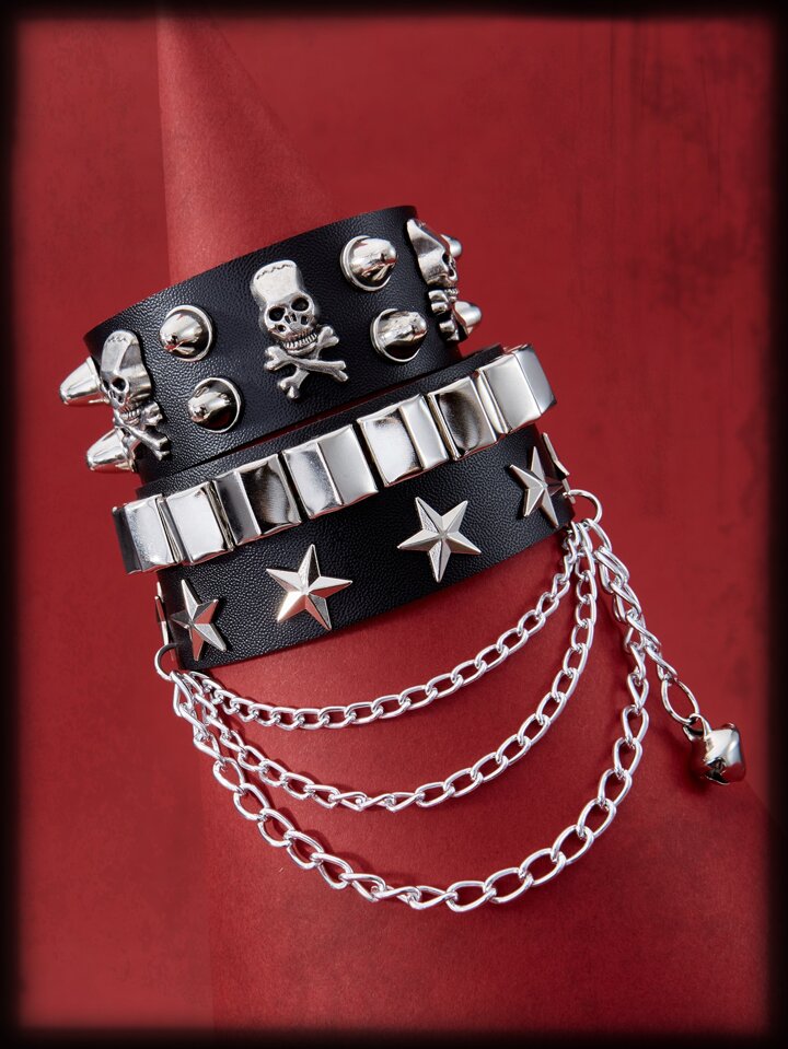 Grunge Punk Kpop 2pcs Star & Skull Decor Bracelet