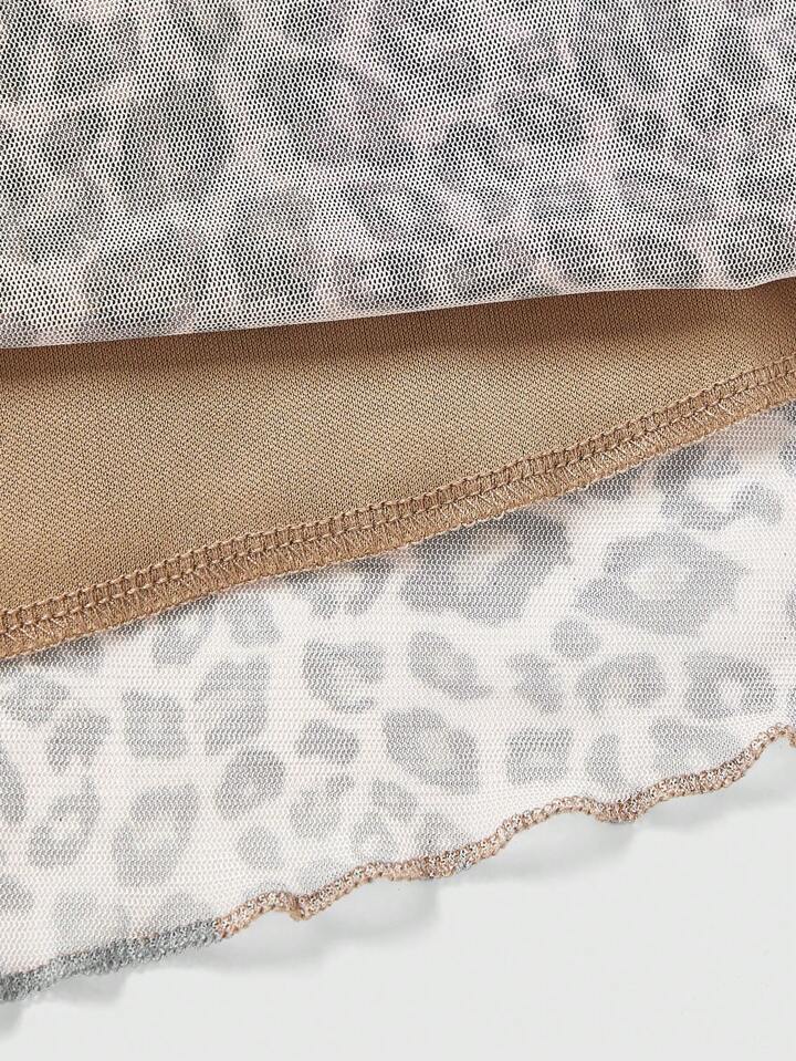Grunge Punk Ladies Leopard Print Mesh Ruched Bow Knot Strapless Dress