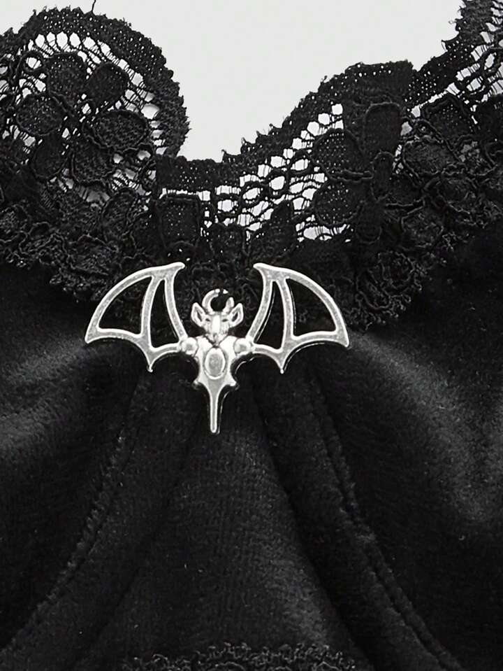 Grunge Punk Ladies Velvet & Lace & Underwire Design Bat Shaped Pendant Bralette, Lingerie