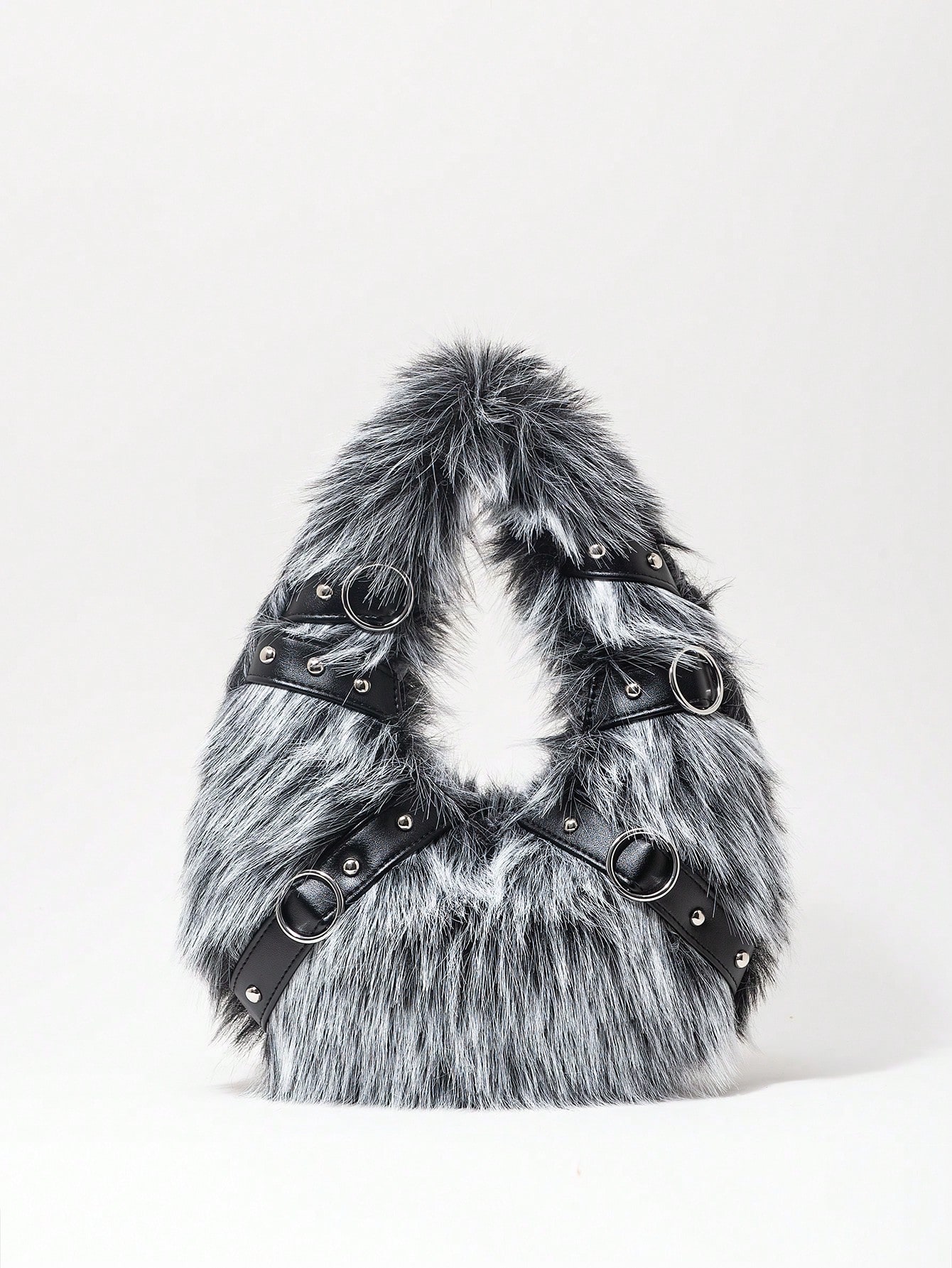 Grunge Punk Ladies,Women Hand Bags,Plush,Plush Bag,Punk Rivet Biker Bags,Gifts For Women,Metal Chain,Fashionable,Personalized,Versatile,Shopping,Street,Sweet And Cool Girls,Hot Girls,Y2k,Daily,Autumn And Winter(Random Pattern)
