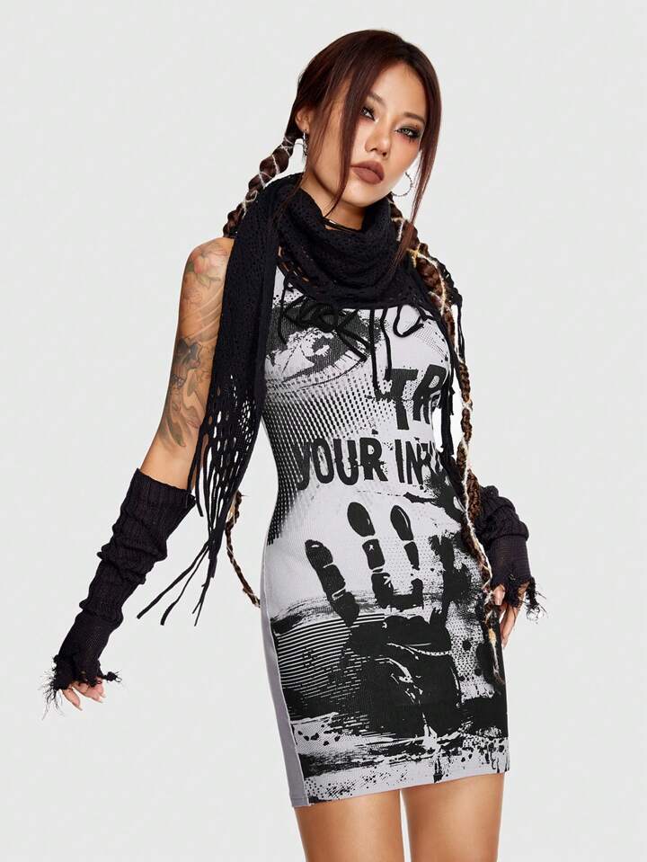 Grunge Punk Letter Graphic Tie Dye Bodycon Dress