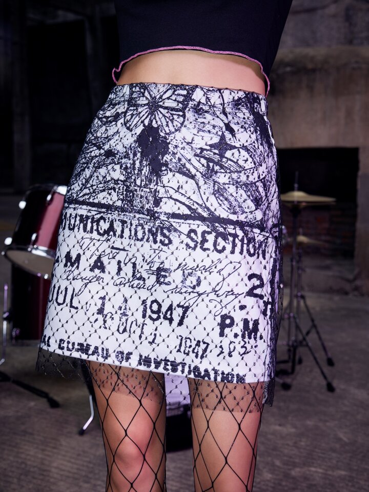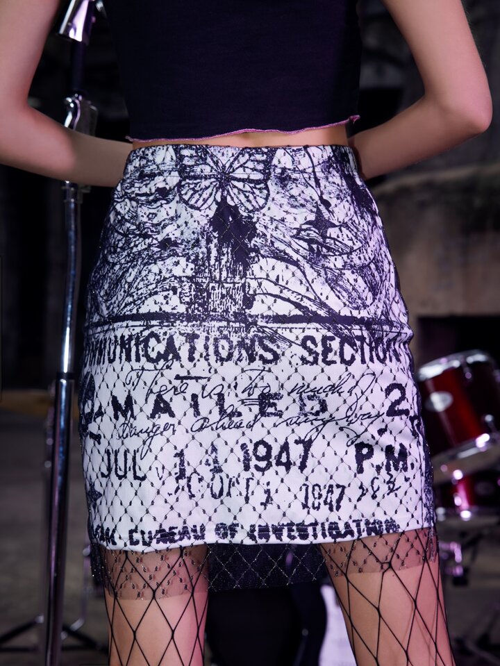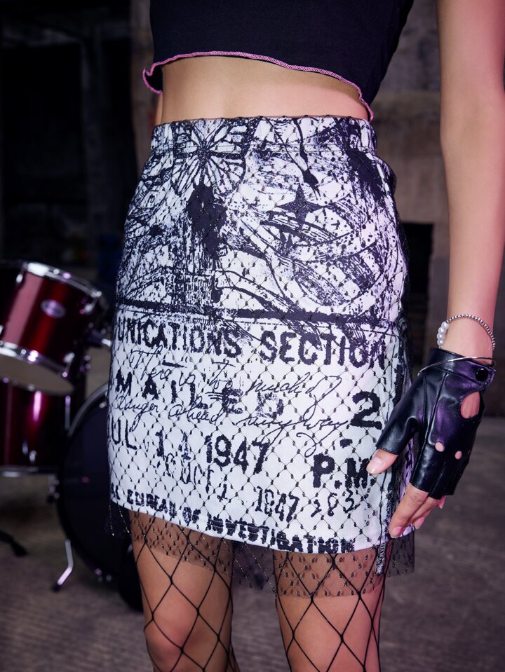 Grunge Punk Letter Print Contrast Mesh Skirt