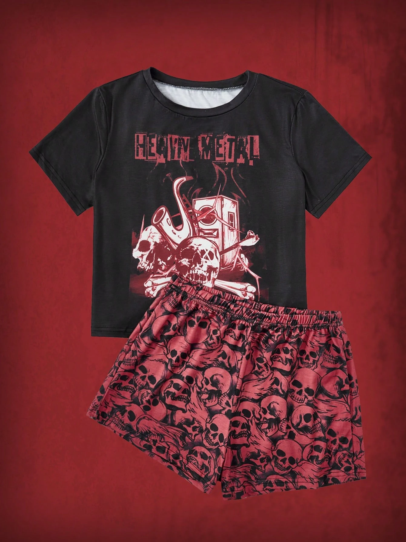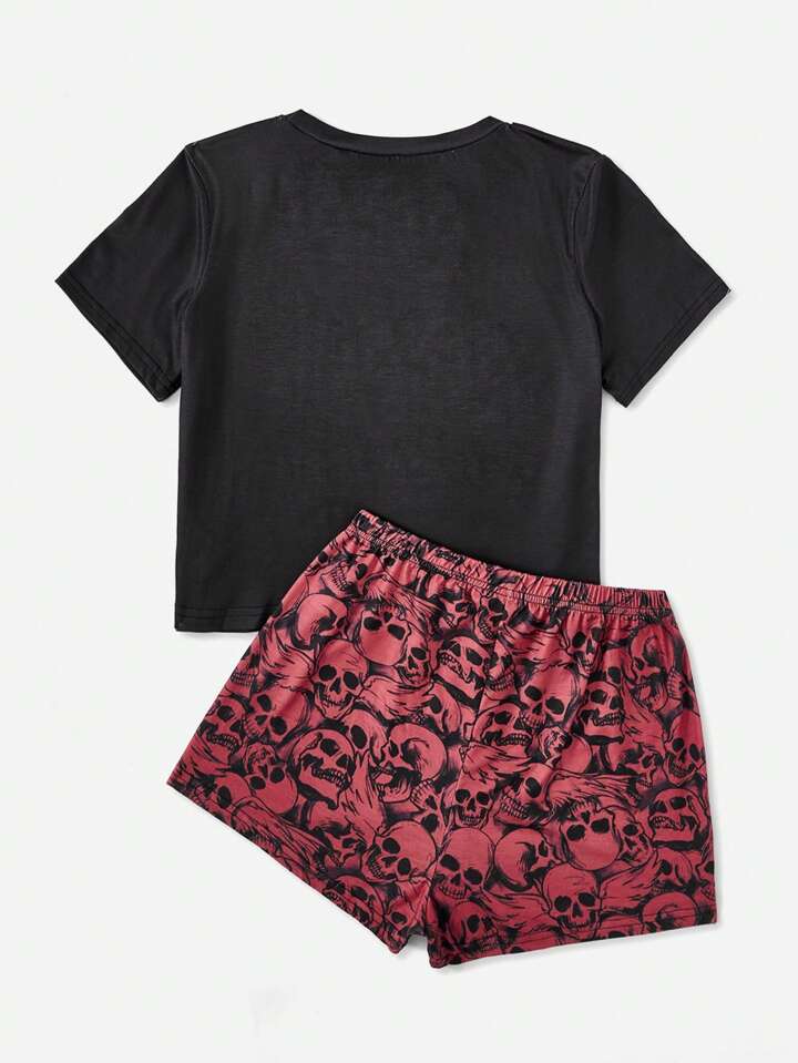Grunge Punk Letter Skull Graphic PJ Set