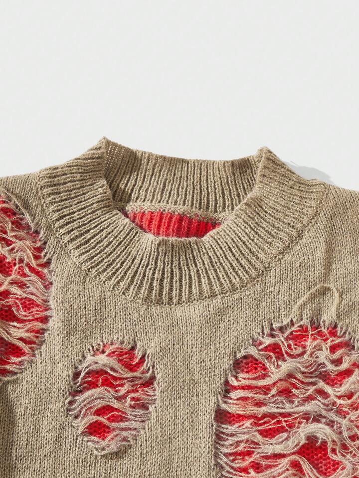 Grunge Punk Men Colorblock Ripped Drop Shoulder Sweater