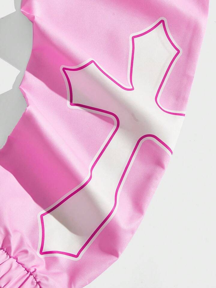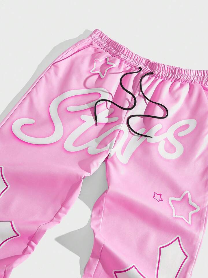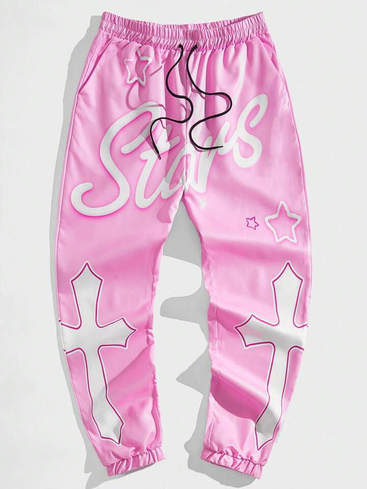 Grunge Punk Men Letter & Cross Graphic Drawstring Waist Pants