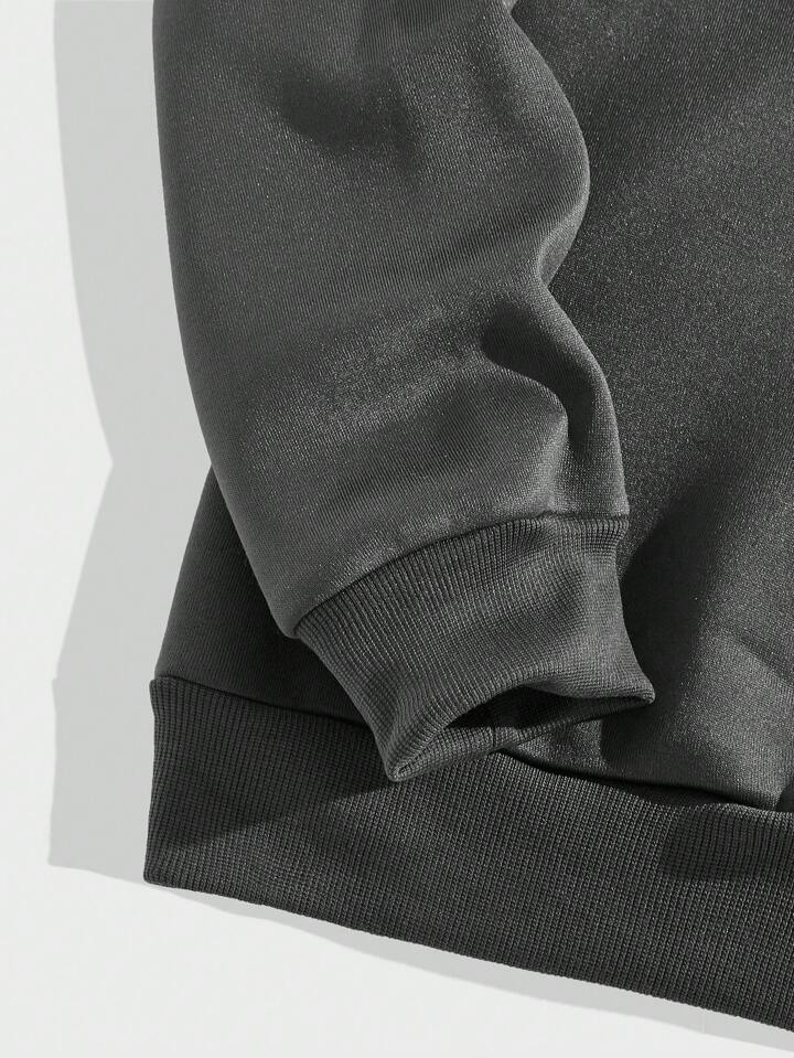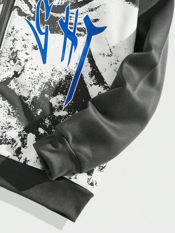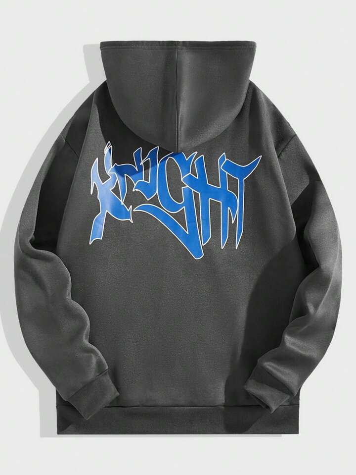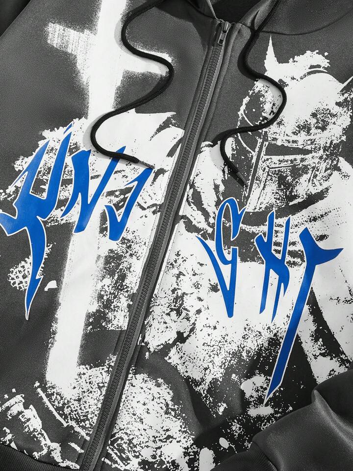 Grunge Punk Men Letter & Figure Graphic Zip Up Drawstring Thermal Lined Hoodie