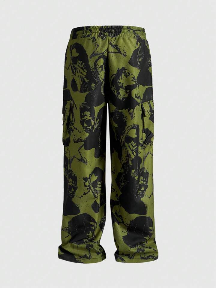 Grunge Punk Men's All-Over Print Woven Casual Pants, Minimalist Style For Daily Wear