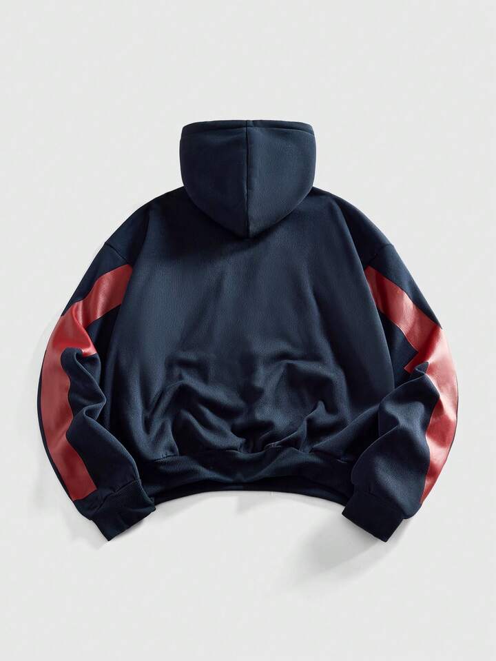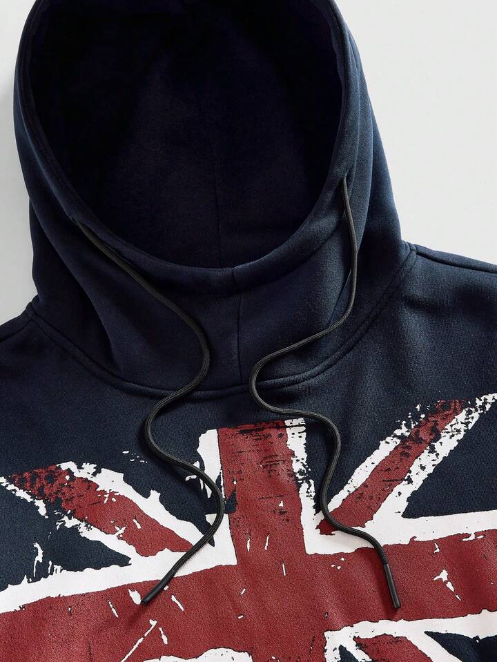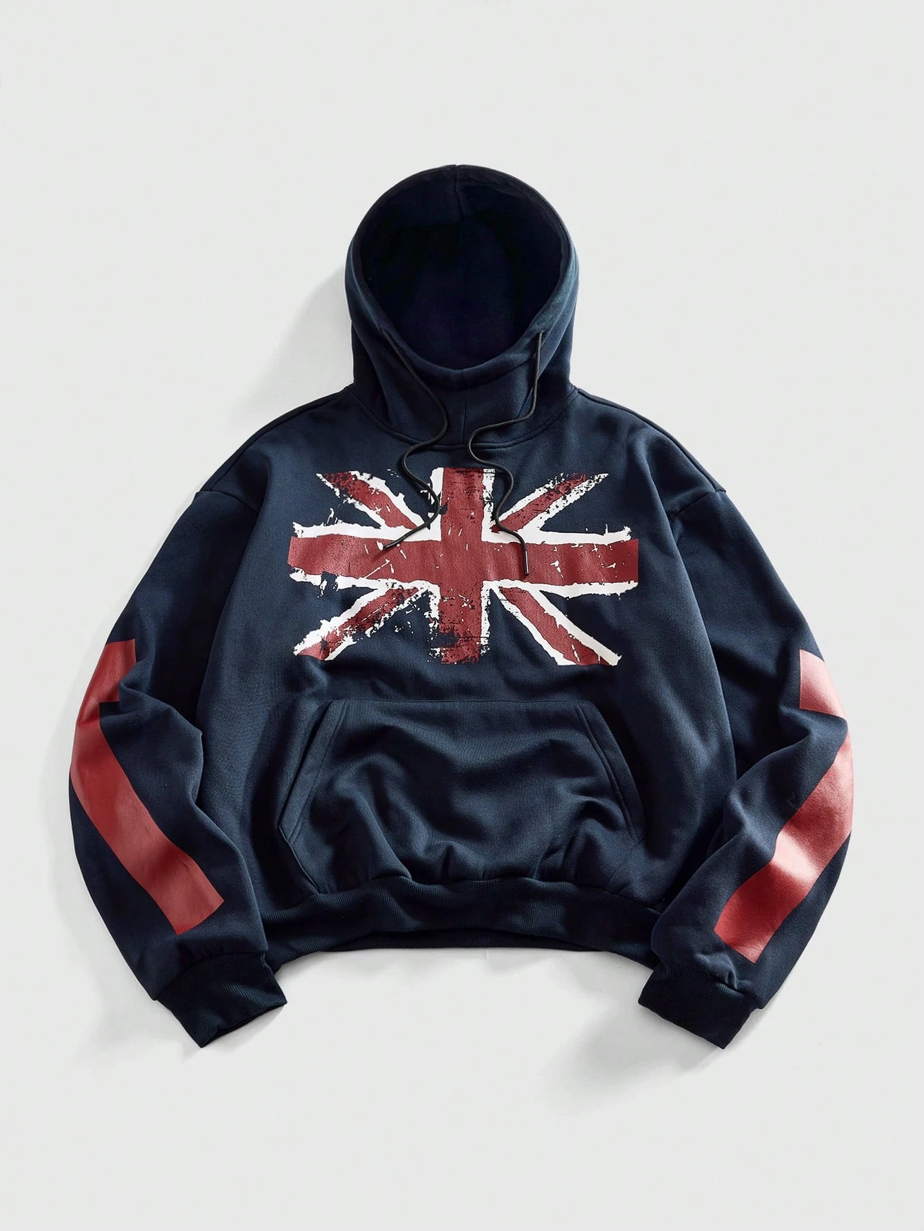 Grunge Punk Men's Autumn Union Jack Print Drop Shoulder Long Sleeve Pocket Drawstring Hoodie Sweatshirt