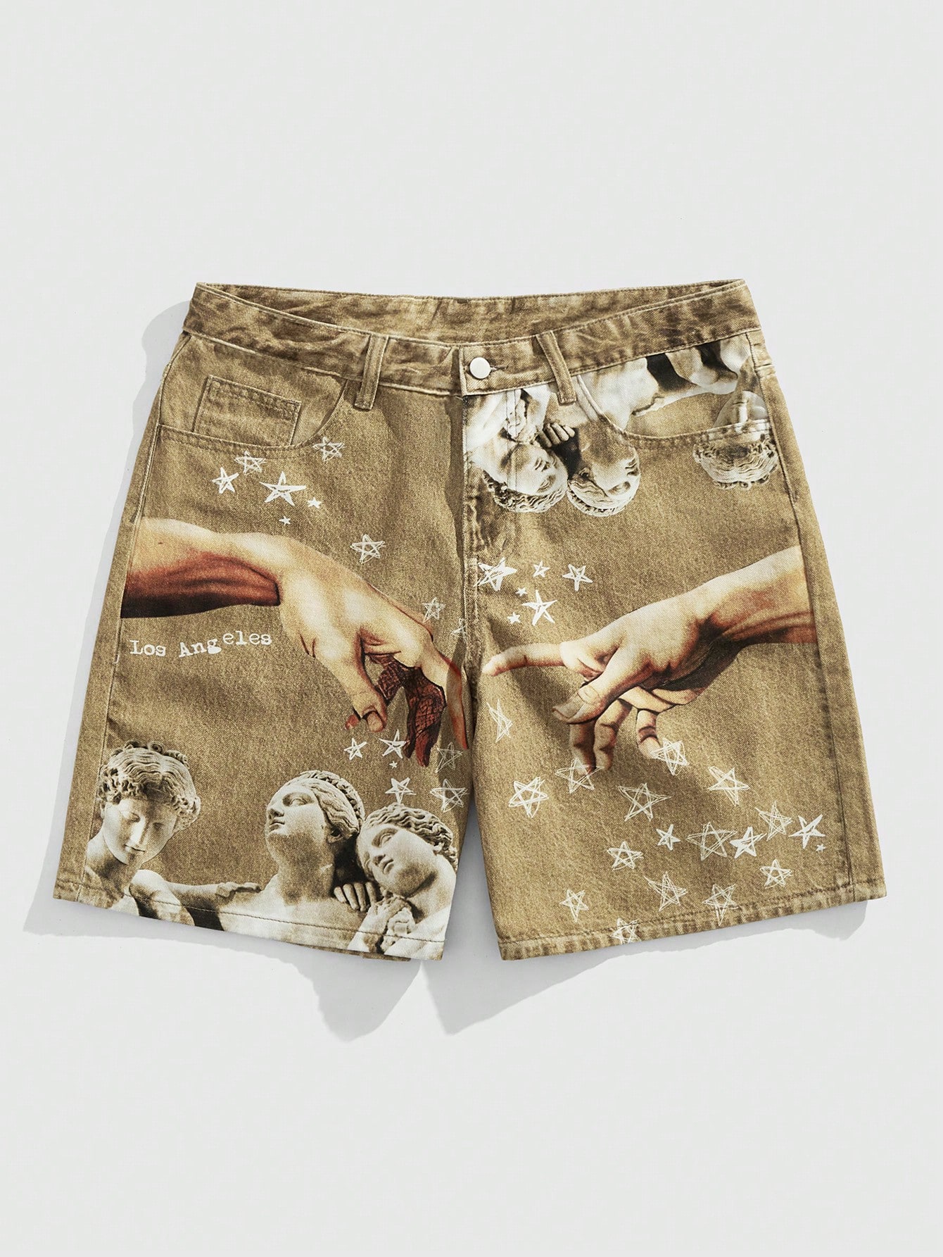Grunge Punk Men's Casual Washed Denim Star Print Shorts
