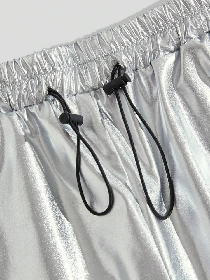 Grunge Punk Men's Drawstring Belt Pu Leather Utility Cargo Pants, School