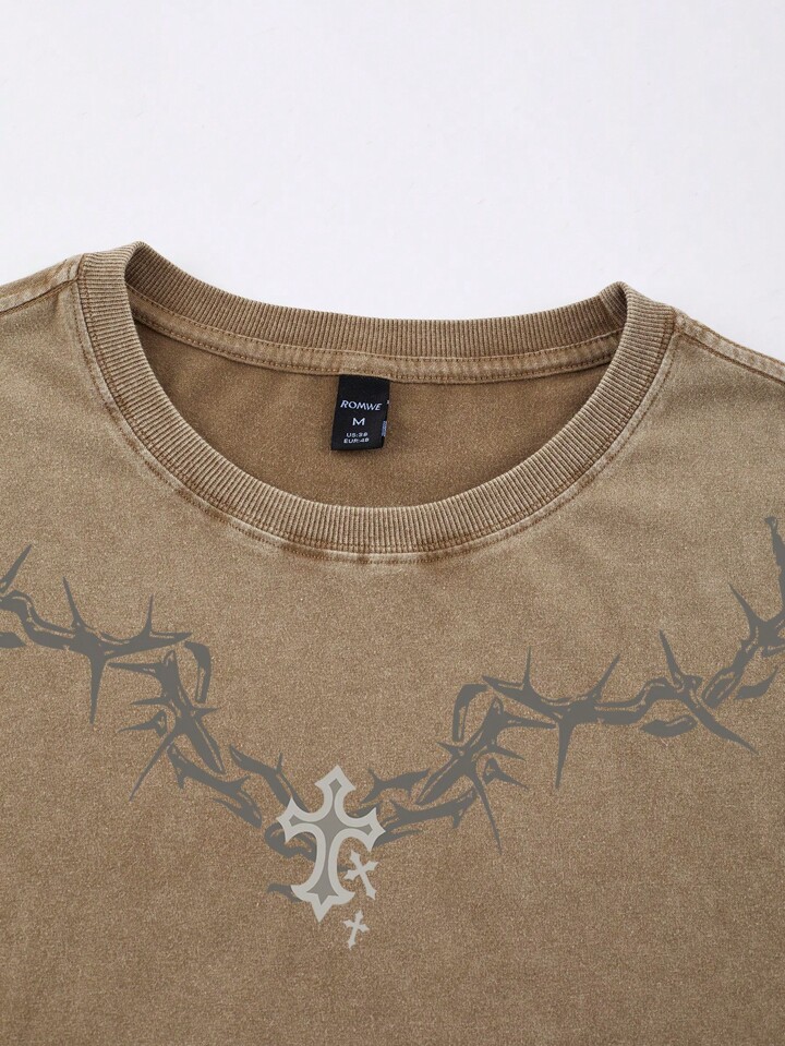 Goth Men's Grunge Washed Crew Neck Short Sleeve Casual T-Shirt And Drawstring Waist Shorts Set